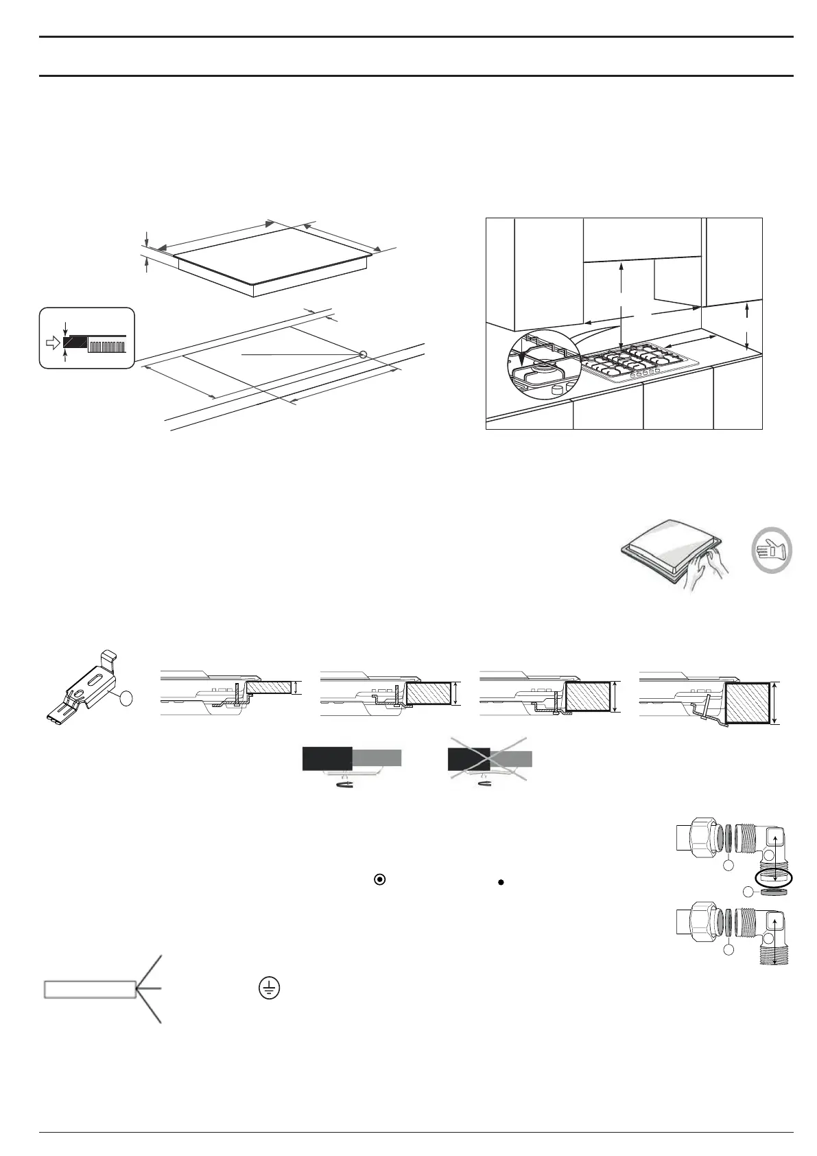 • Se sotto il piano di cottura non è previsto un forno, inserire un pannello separatore che abbia una supercie pari almeno all’apertura nel piano di lavoro. Tale