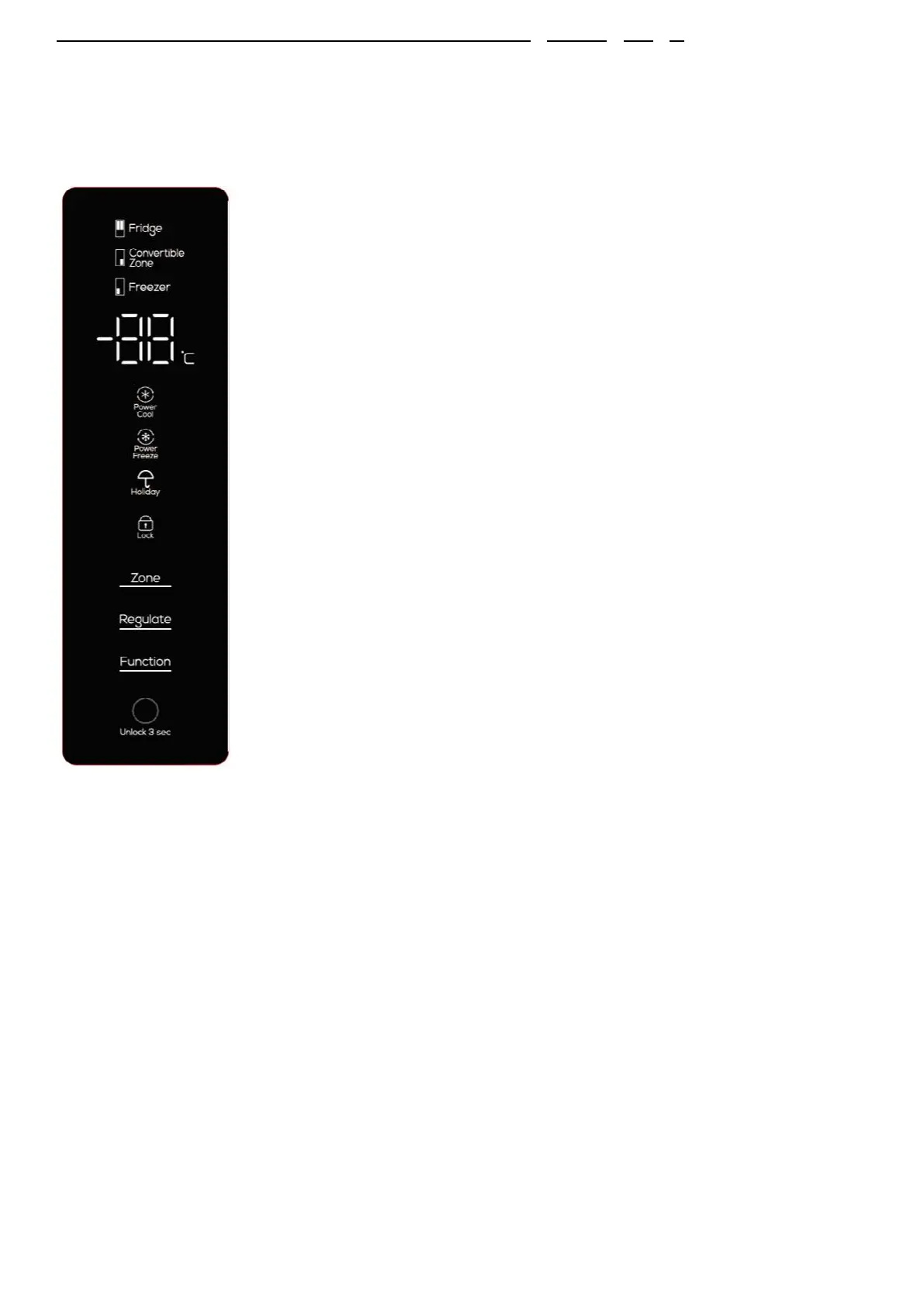 Nota: Se nenhum botão for premido durante 30 segundos, o frigoríco ativa a