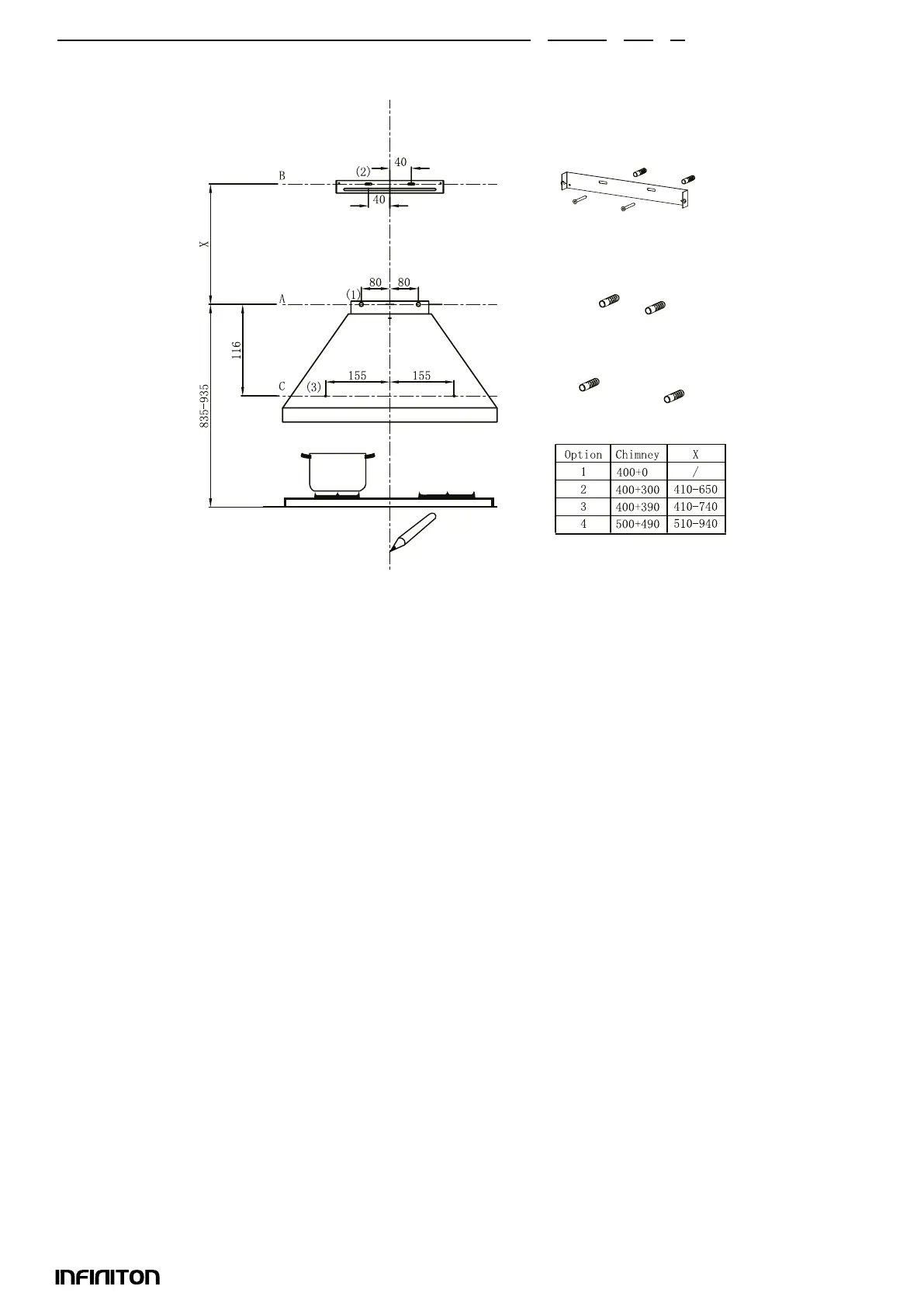 Fixar um suporte de xação da chaminé 21 com 2 parafusos 10 (5 x 50) na linha horizontal A.