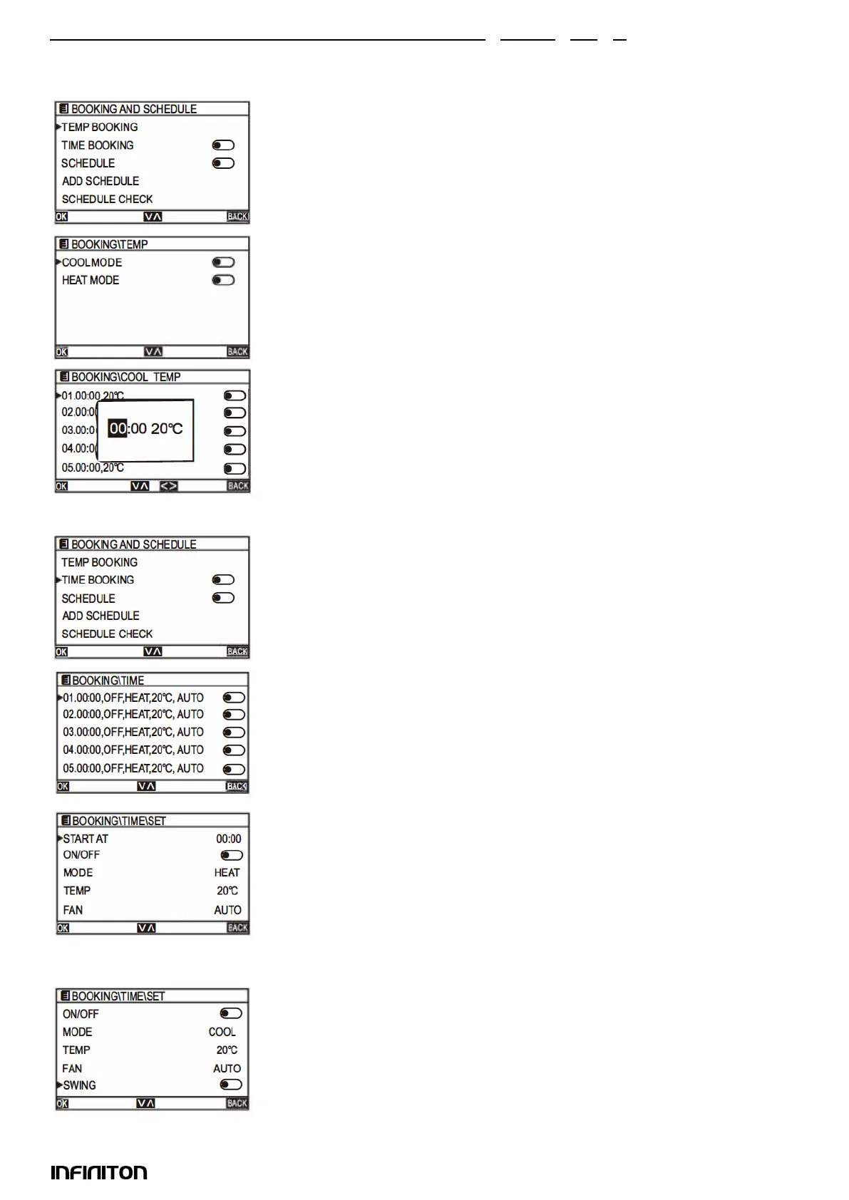 In the TEMP BOOKING page, select COOL MODE and press the [MENU/OK] key
