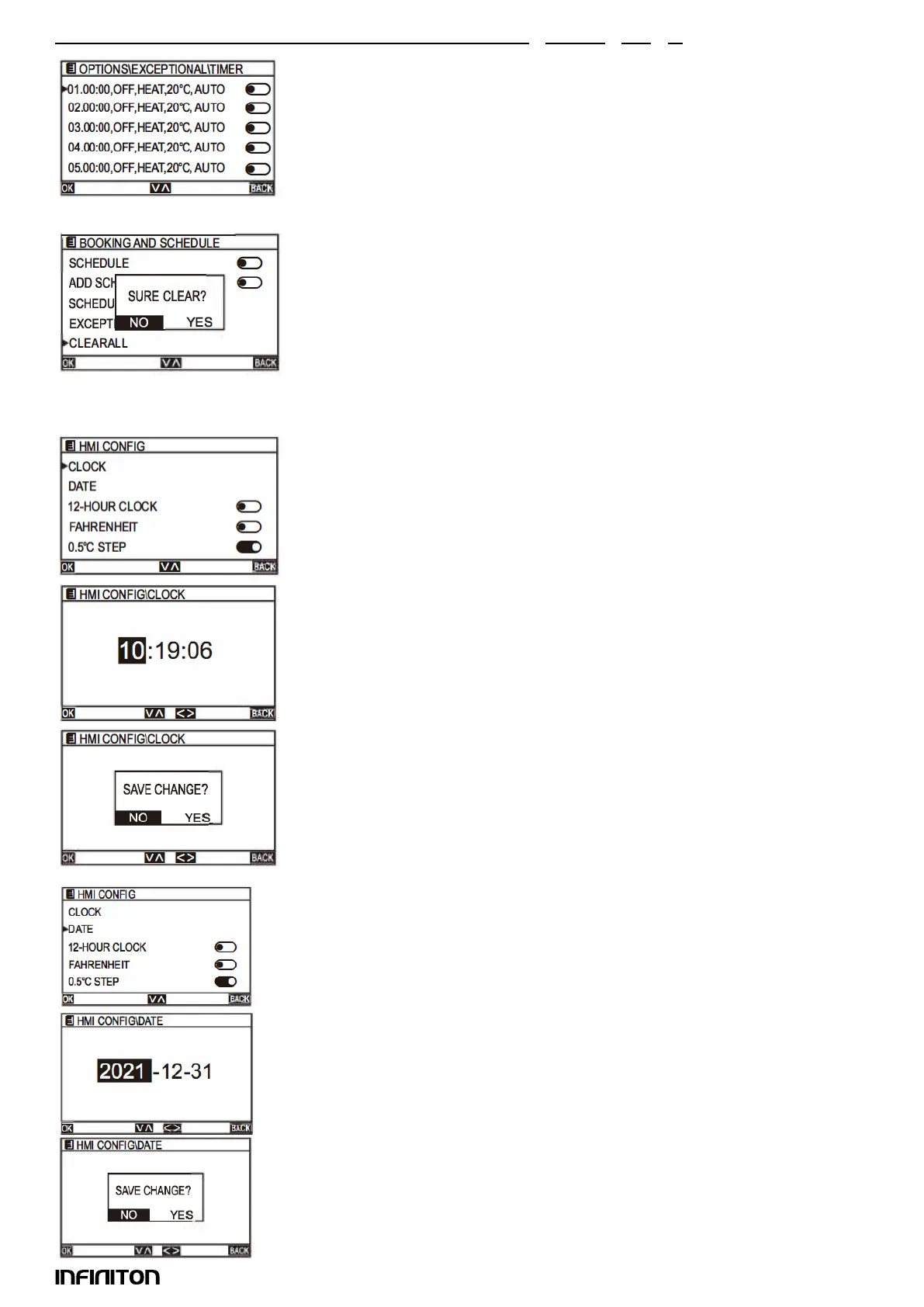 On the HMI CONFIG page, select CLOCK and press the [ MENU/OK key] to set