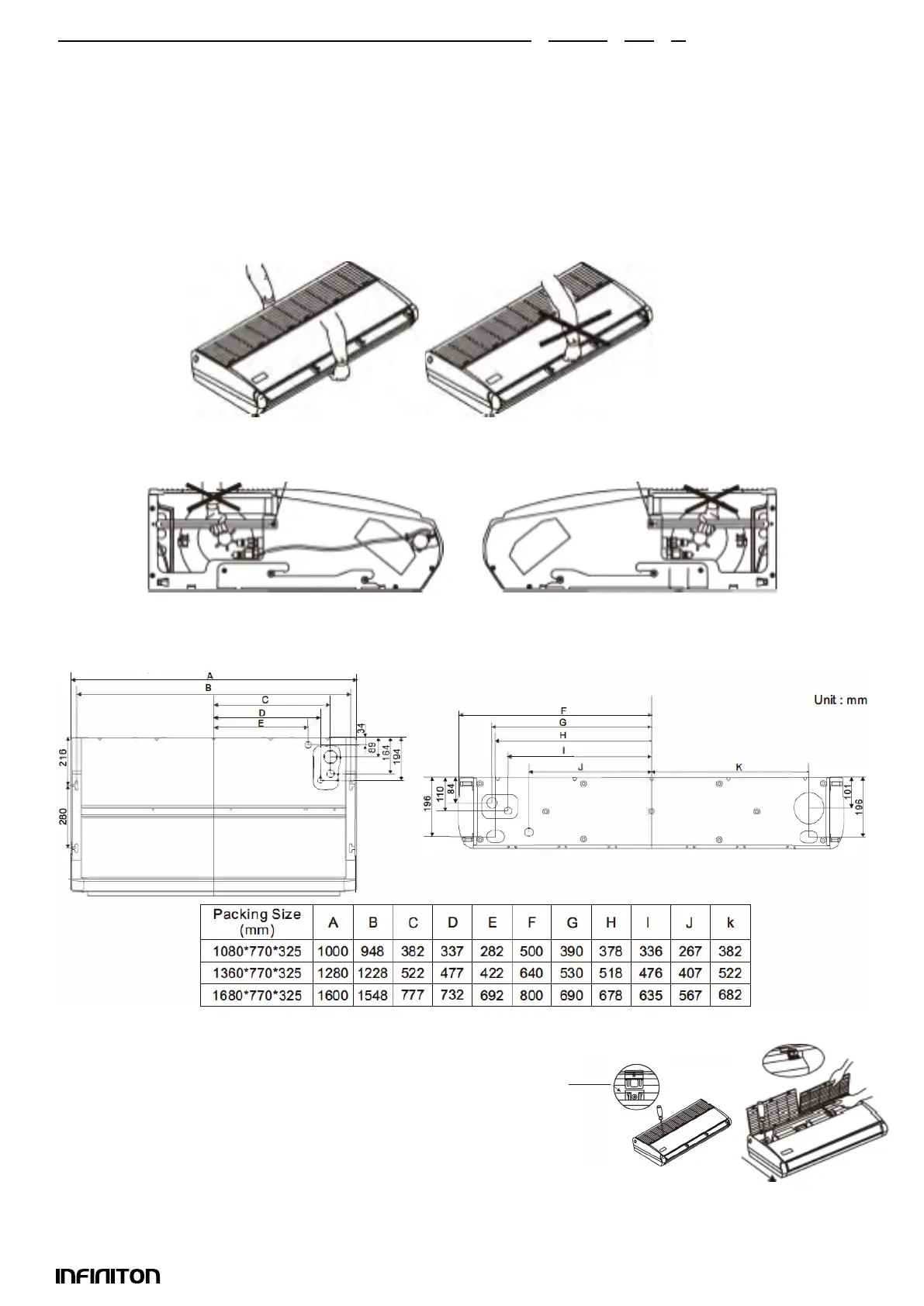 Esta unidade interior pode ser instalada até 4,3m para tamanho de embalagem (1675*770*320mm) e