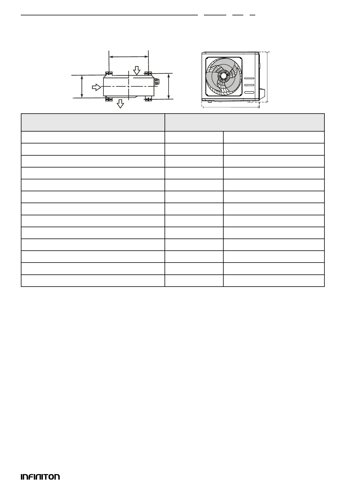 parar a base de instalação da unidade de acordo com as dimensões dadas abaixo: