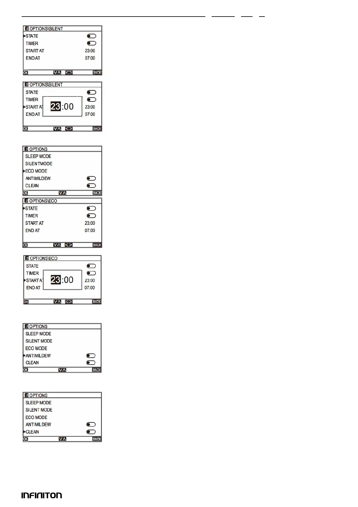 Na página ECO, seleccionar START AT e premir a tecla [MENU/OK] para de-