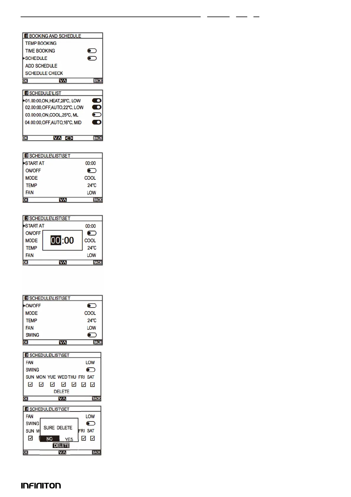 Na página SCHEDULE, seleccione qualquer um e prima a tecla [MENU/OK]