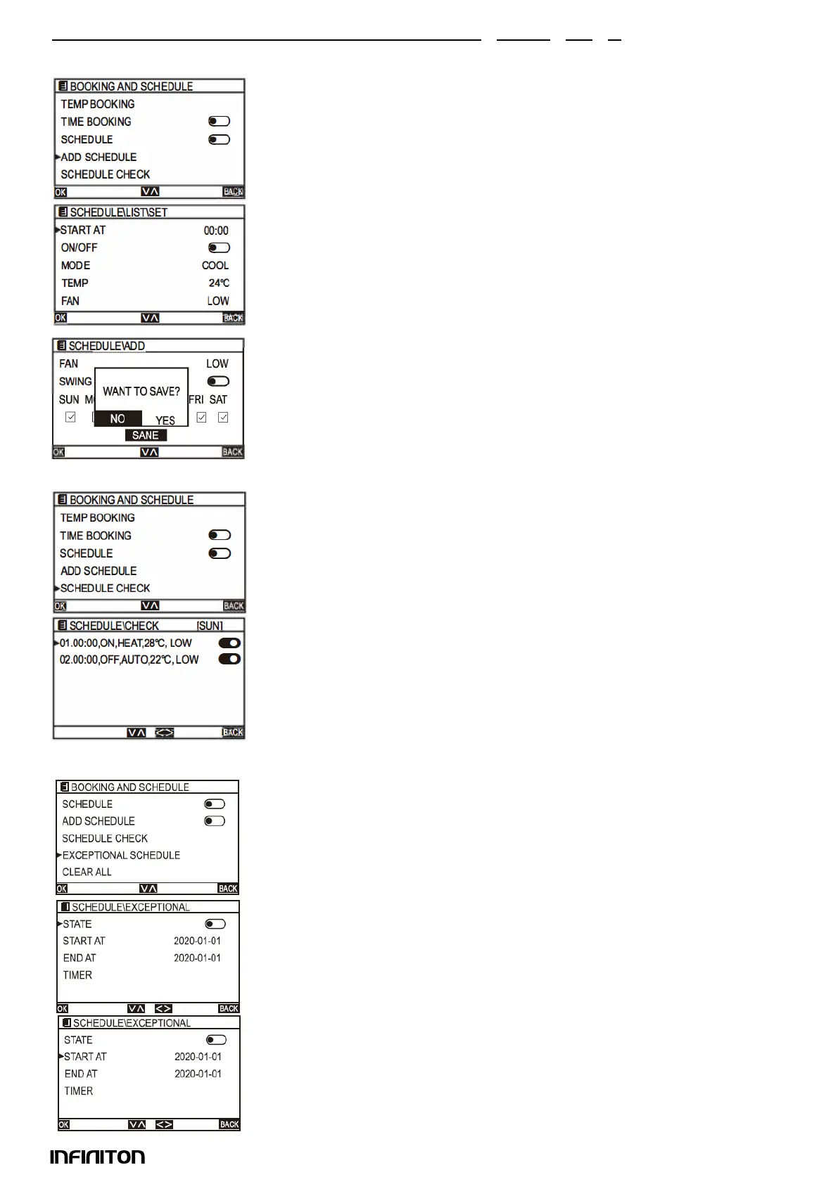 Na página SCHEDULE CHECK, alterar o programa semanal premindo “ < “ou”