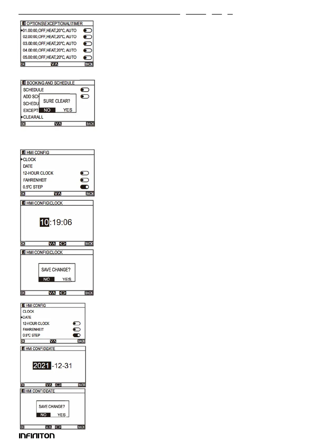Na página CONFIG do HMI, seleccionar CLOCK e premir a tecla [ MENU/OK]