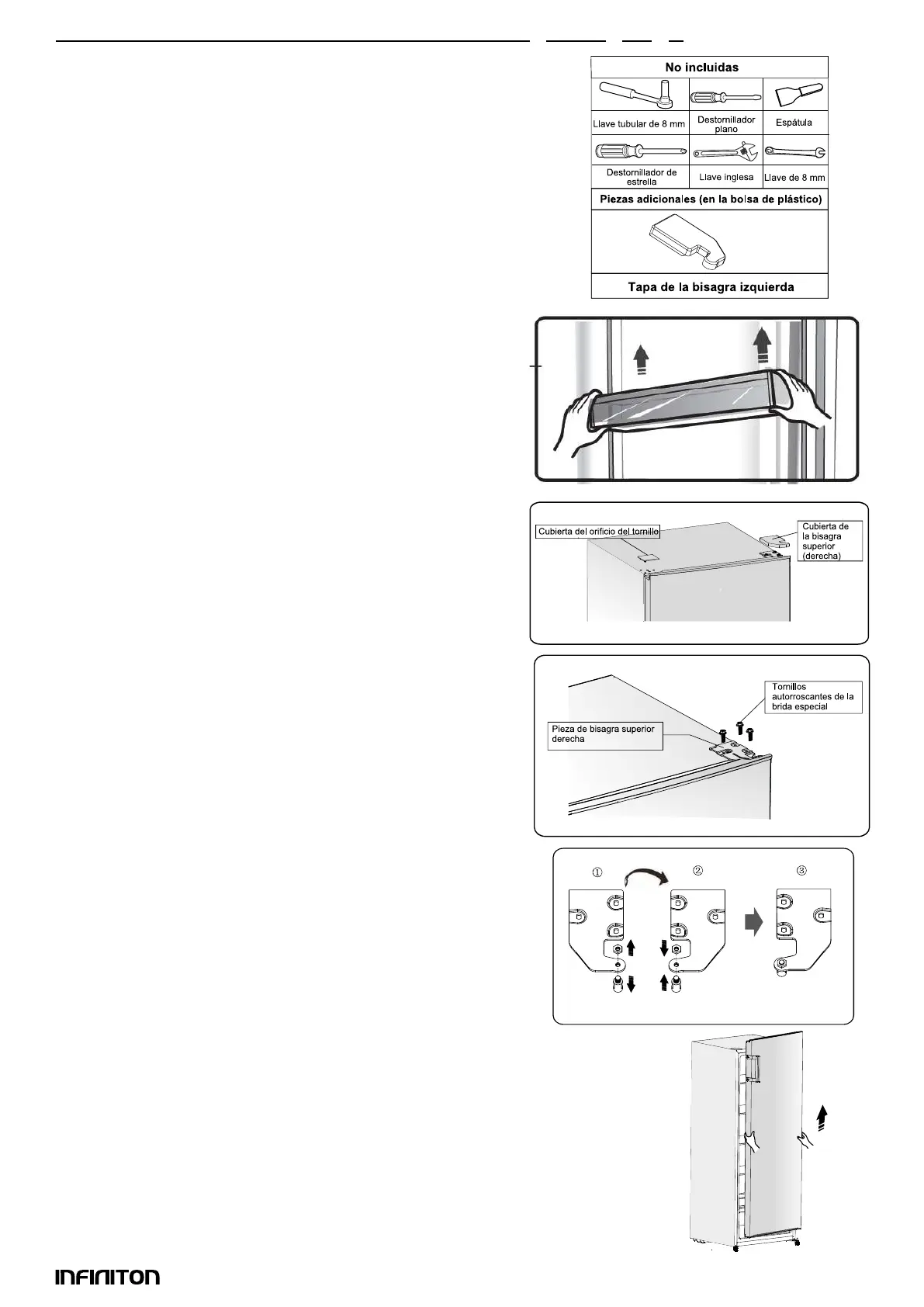 izquierda del frigoríco y la tapa de la bisagra superior de la