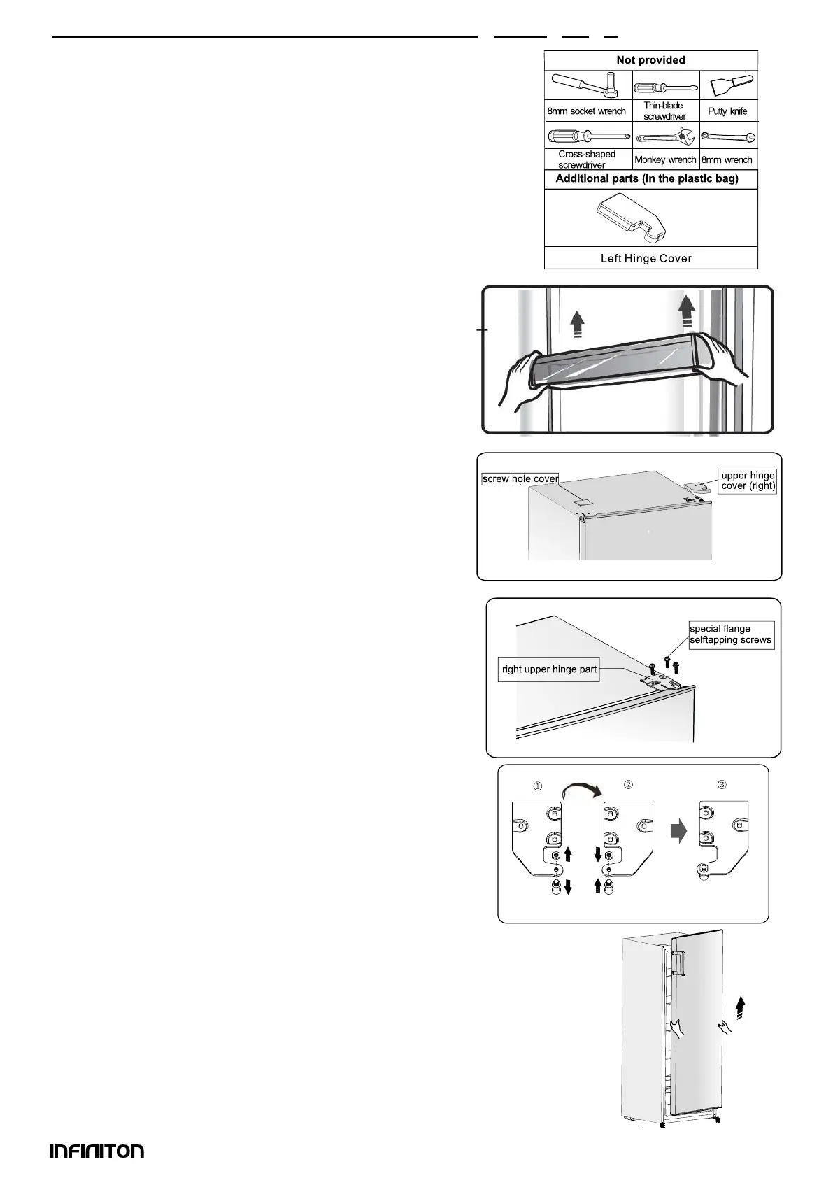 NOTE: When removing the door, be careful of the washer(s) located be-