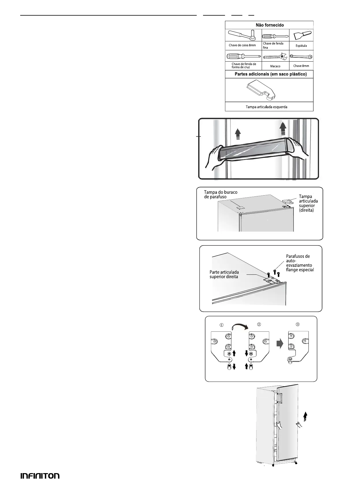 NOTA: Ao retirar a porta, tenha cuidado com a(s) anilha(s) situada(s)