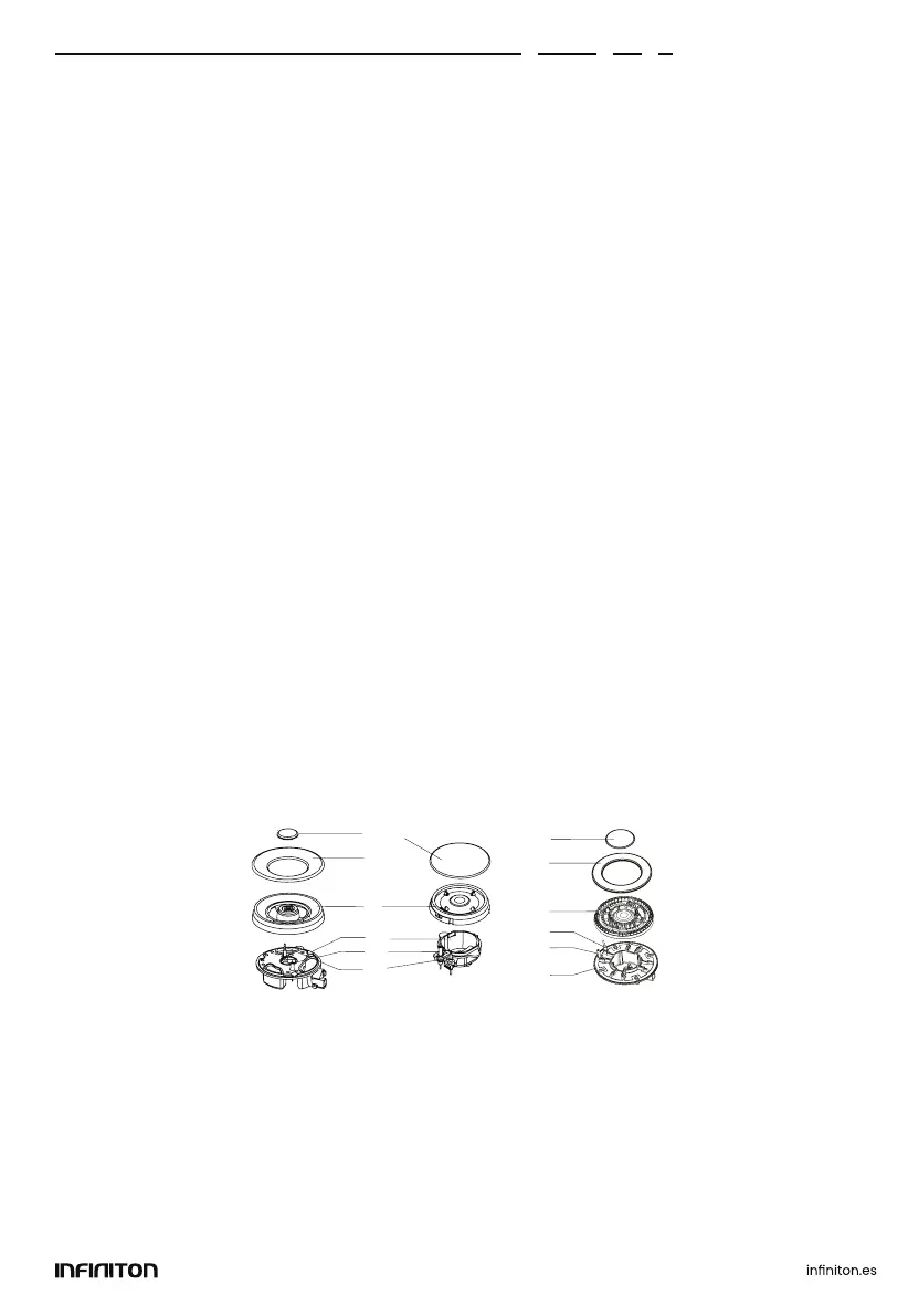 • Todos los elementos de los quemadores pueden desmontarse para su limpieza.