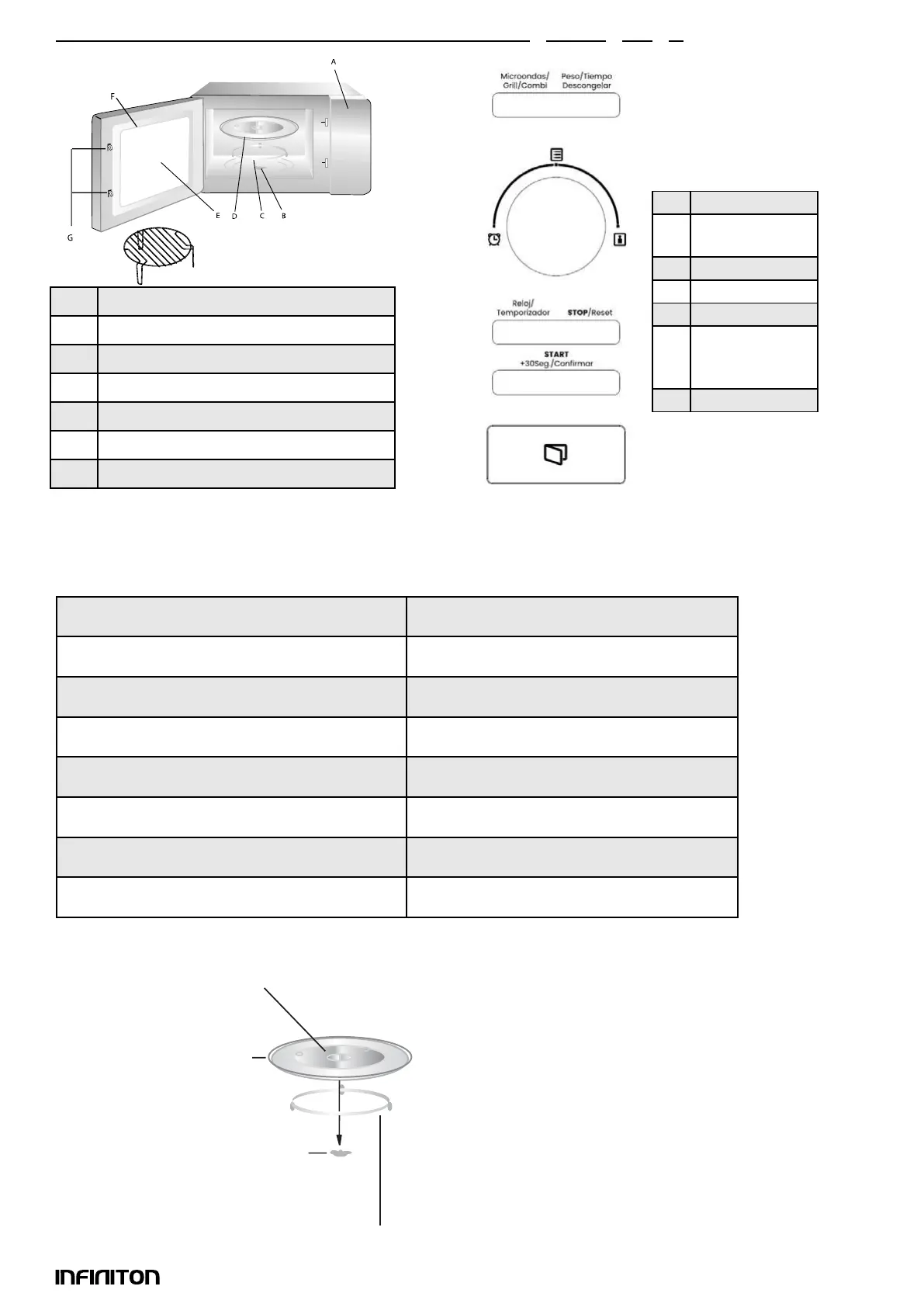 Si la bandeja de cristal o el conjunto del aro giratorio
