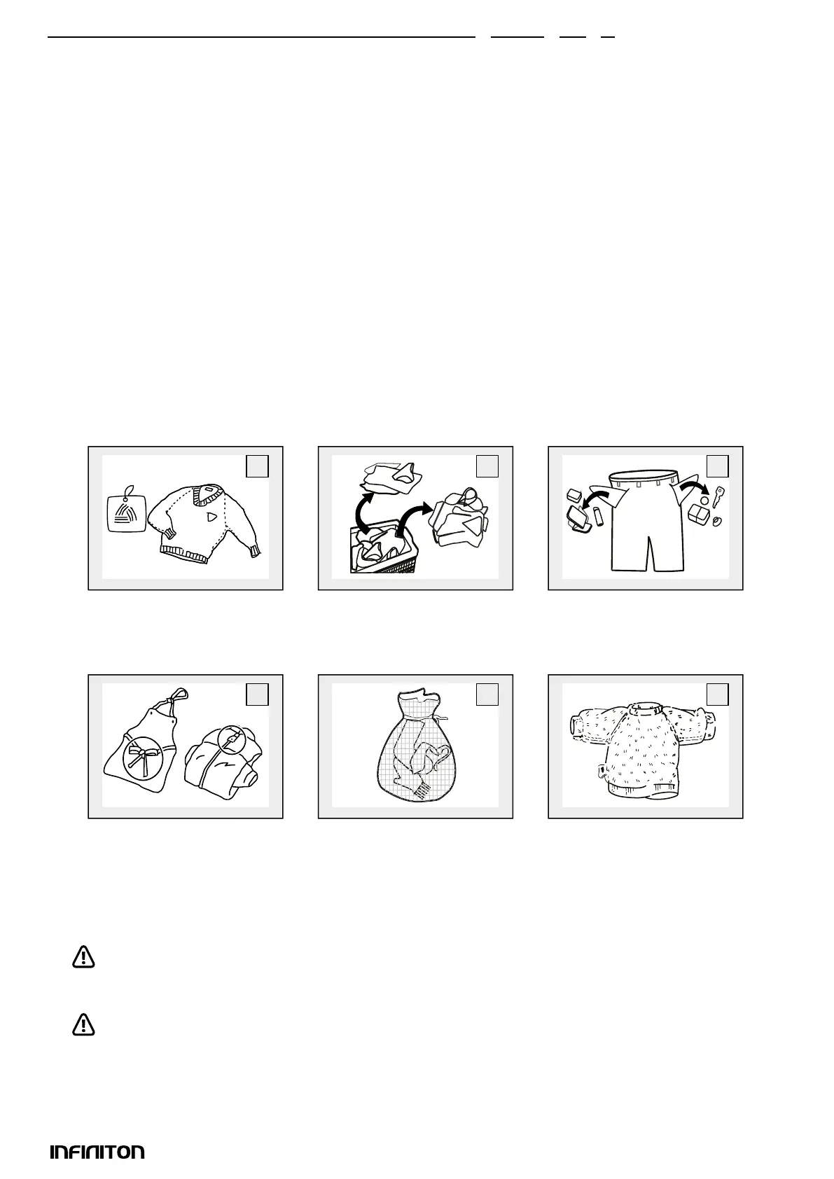 WARNING! Washing loose laundry can create an imbalance in the drum. Always wash more than