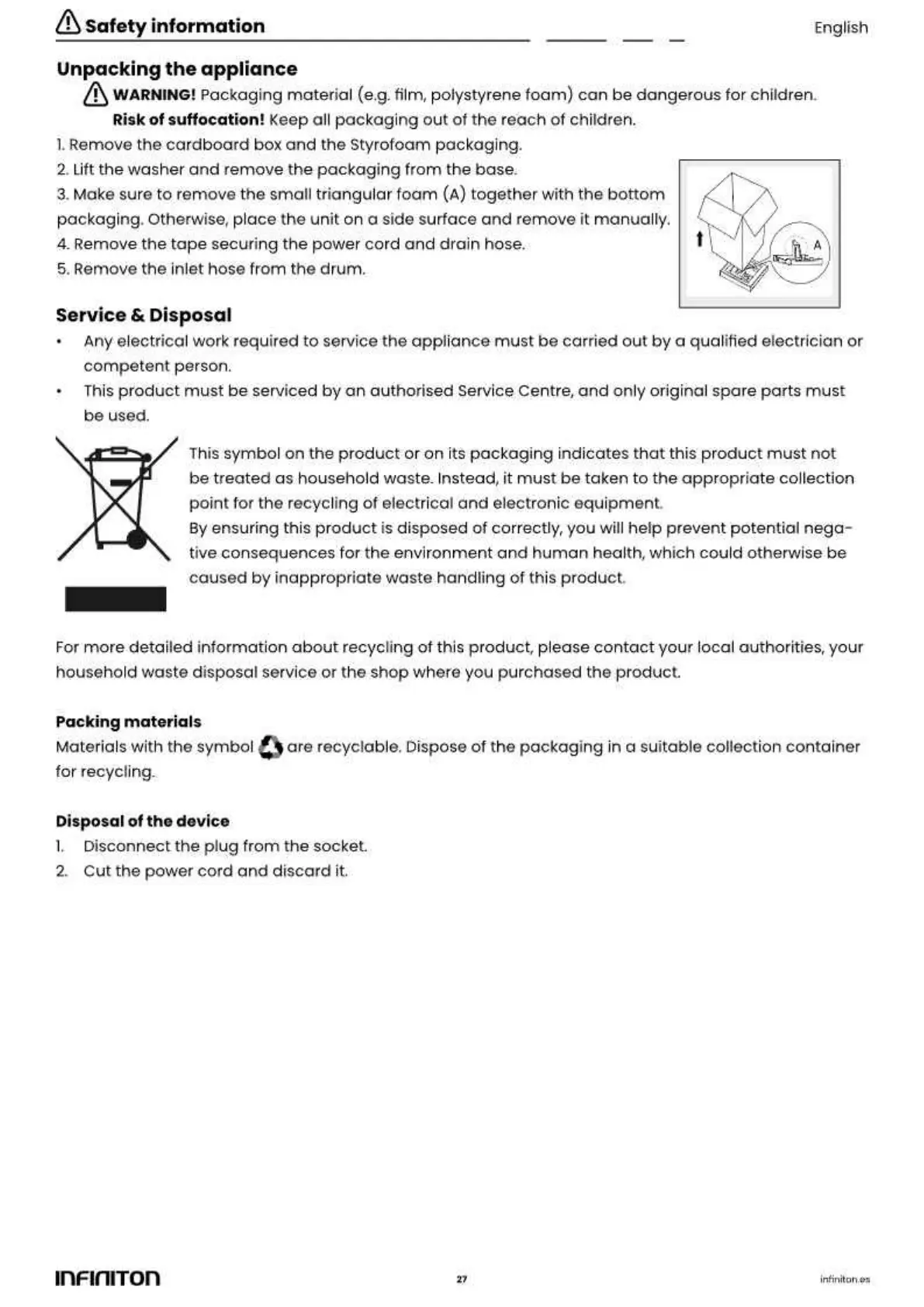 Bekijk gratis de handleiding van Infiniton WM-S14BAL, stel vragen en lees de antwoorden op veelvoorkomende problemen, of gebruik onze assistent om sneller informatie in de handleiding te vinden of uitleg te krijgen over specifieke functies.