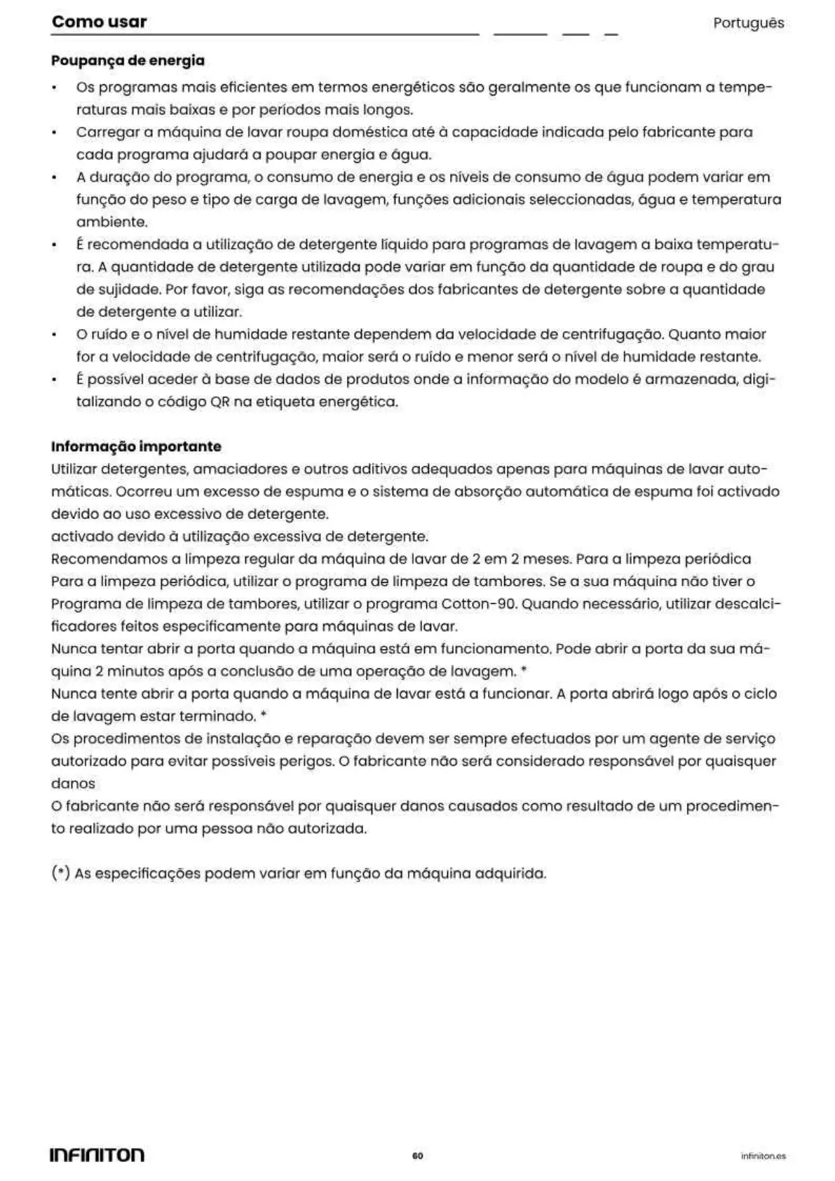 Bekijk gratis de handleiding van Infiniton WM-S14BAL, stel vragen en lees de antwoorden op veelvoorkomende problemen, of gebruik onze assistent om sneller informatie in de handleiding te vinden of uitleg te krijgen over specifieke functies.
