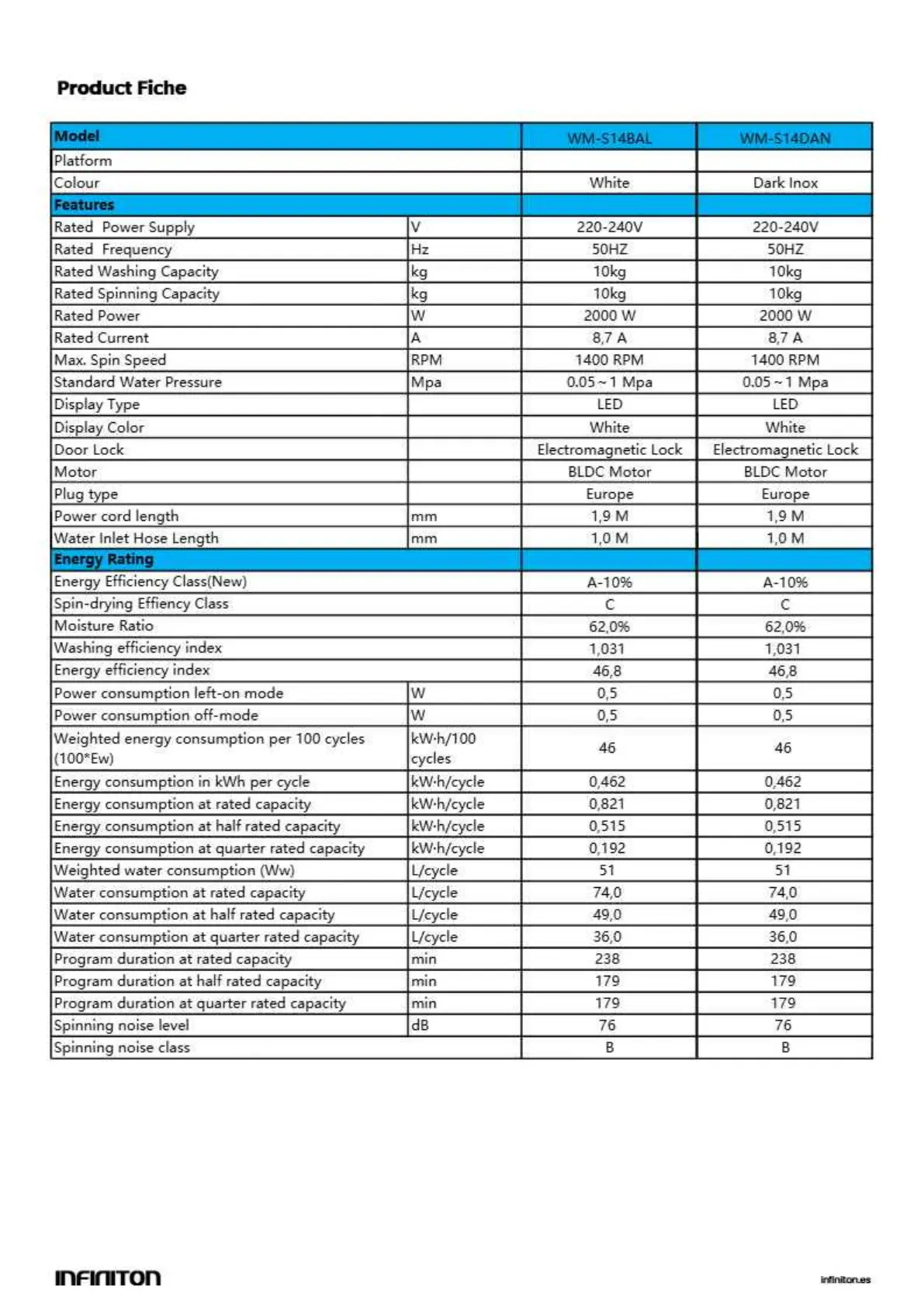 Bekijk gratis de handleiding van Infiniton WM-S14BAL, stel vragen en lees de antwoorden op veelvoorkomende problemen, of gebruik onze assistent om sneller informatie in de handleiding te vinden of uitleg te krijgen over specifieke functies.