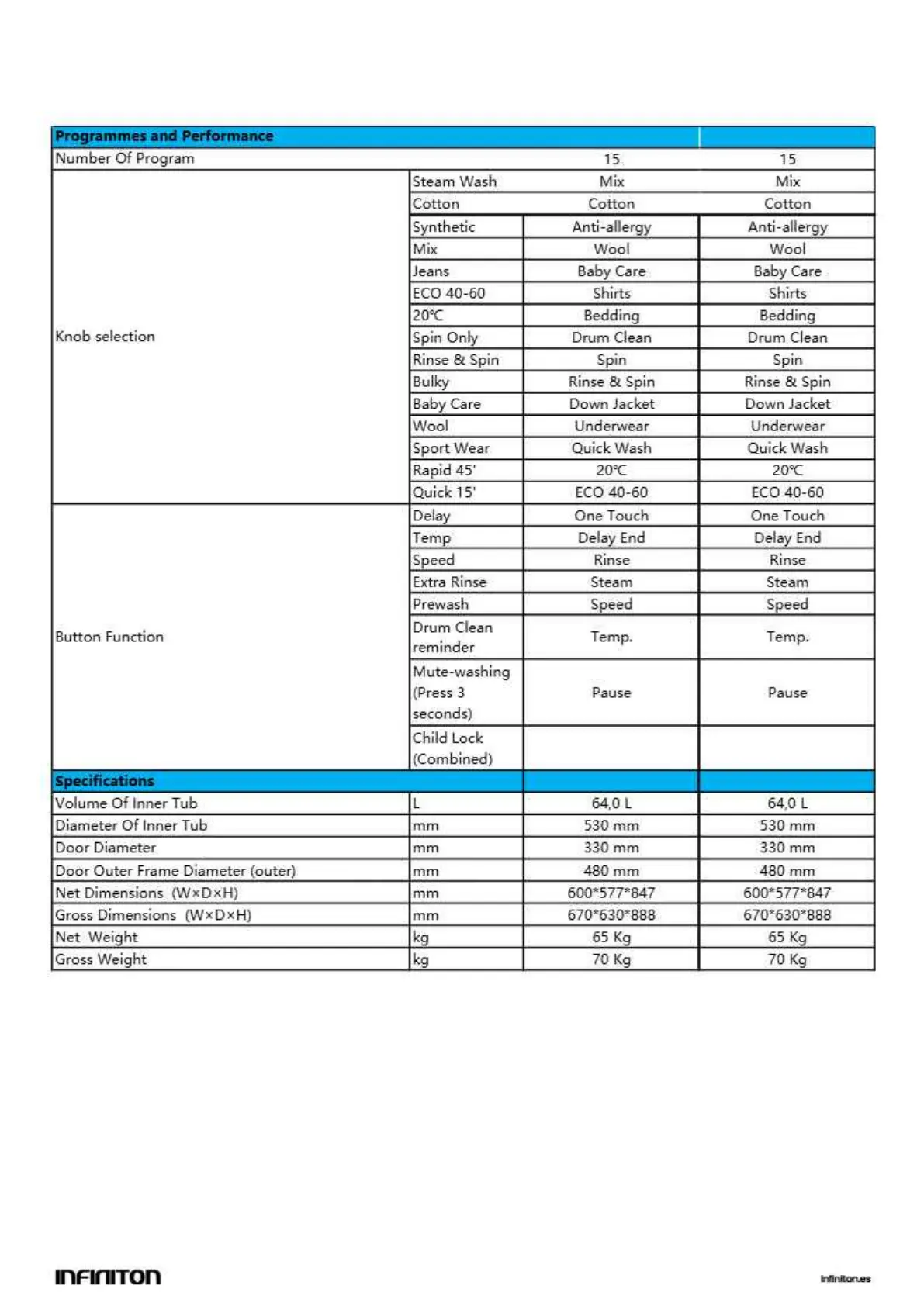 Bekijk gratis de handleiding van Infiniton WM-S14BAL, stel vragen en lees de antwoorden op veelvoorkomende problemen, of gebruik onze assistent om sneller informatie in de handleiding te vinden of uitleg te krijgen over specifieke functies.