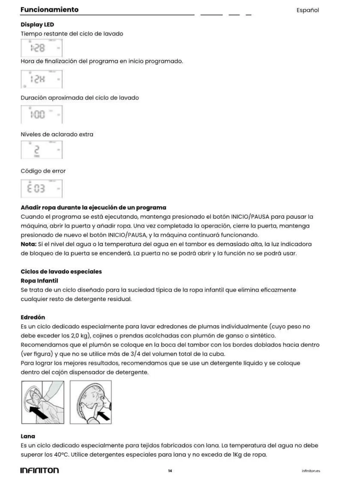 Bekijk gratis de handleiding van Infiniton WM-S14DAN, stel vragen en lees de antwoorden op veelvoorkomende problemen, of gebruik onze assistent om sneller informatie in de handleiding te vinden of uitleg te krijgen over specifieke functies.