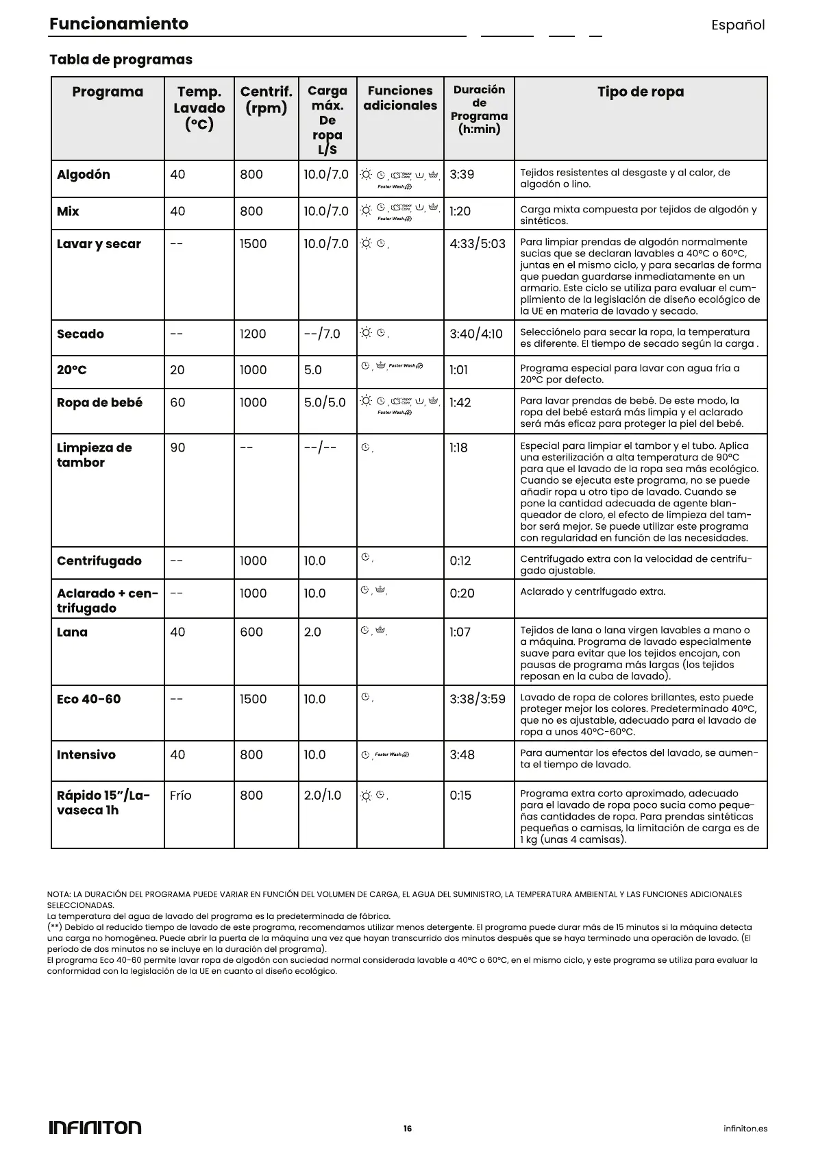 Bekijk gratis de handleiding van Infiniton WSD-K0A7D5DK, stel vragen en lees de antwoorden op veelvoorkomende problemen, of gebruik onze assistent om sneller informatie in de handleiding te vinden of uitleg te krijgen over specifieke functies.