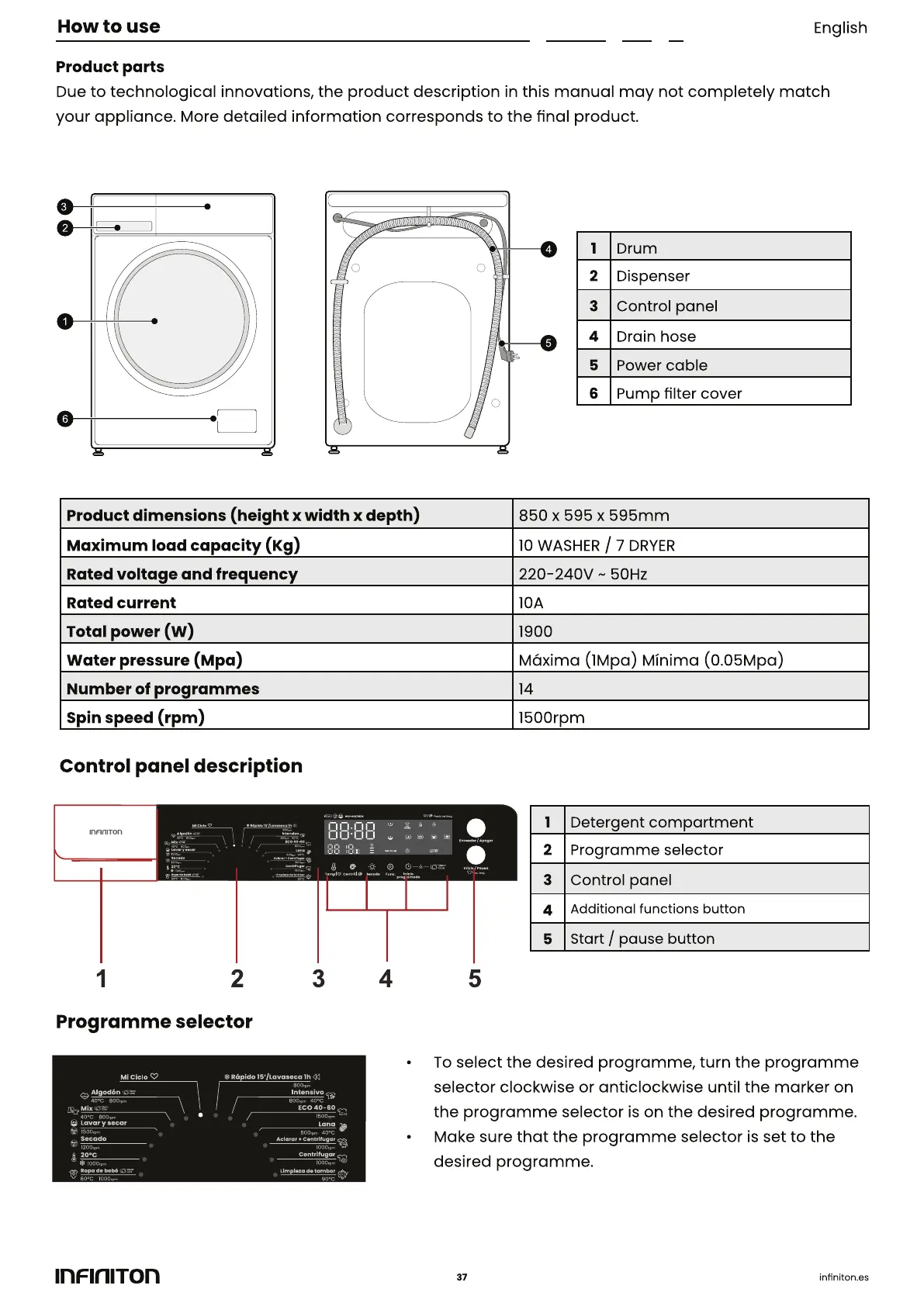 Bekijk gratis de handleiding van Infiniton WSD-K0A7D5DK, stel vragen en lees de antwoorden op veelvoorkomende problemen, of gebruik onze assistent om sneller informatie in de handleiding te vinden of uitleg te krijgen over specifieke functies.
