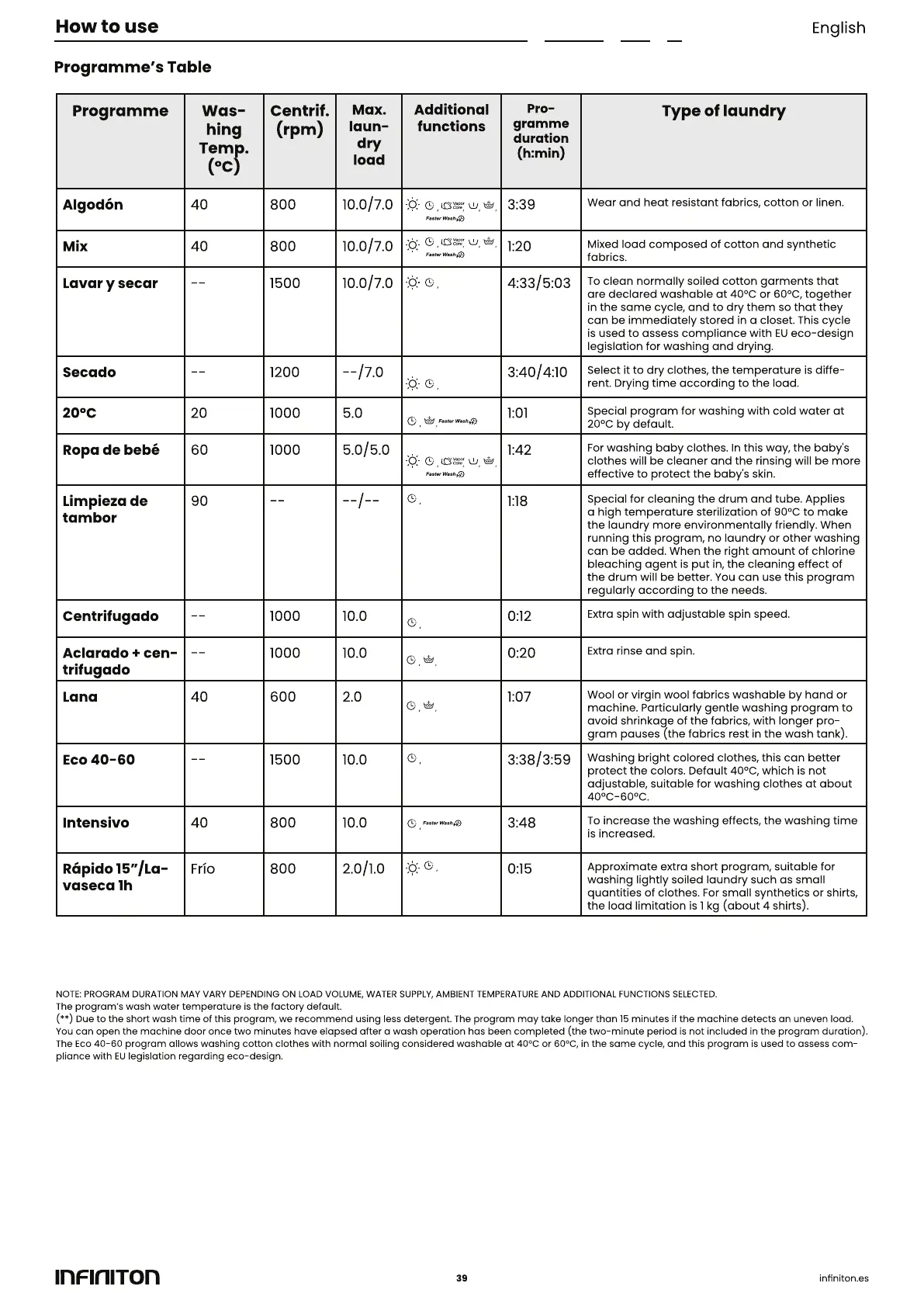 Bekijk gratis de handleiding van Infiniton WSD-K0A7D5DK, stel vragen en lees de antwoorden op veelvoorkomende problemen, of gebruik onze assistent om sneller informatie in de handleiding te vinden of uitleg te krijgen over specifieke functies.