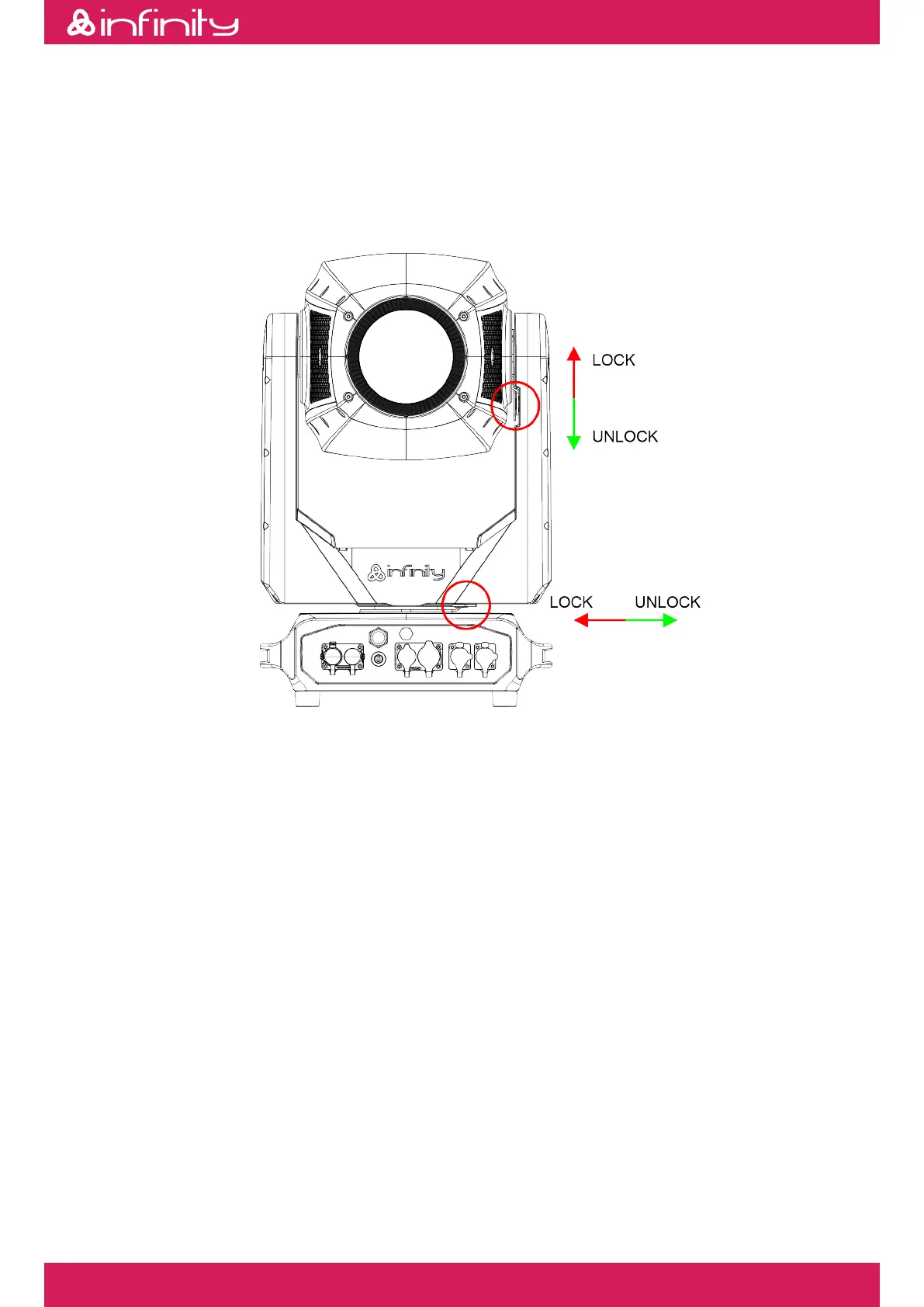• To unlock the device, slide the base locking mechanism (17) to the the right or slide the yoke locking•