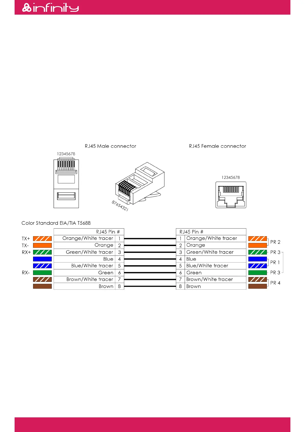 (8P8C) connectors and patch the cables according to the T568B color standard.