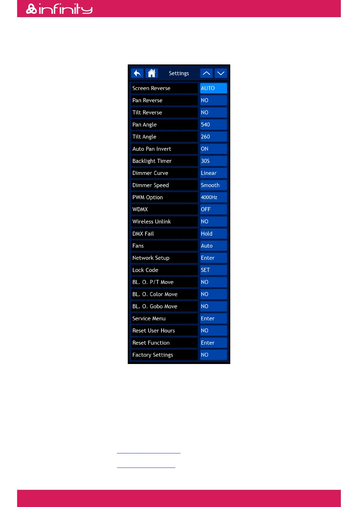 • WDMX: Activate/deactivate Wireless DMX (ON/OFF)•