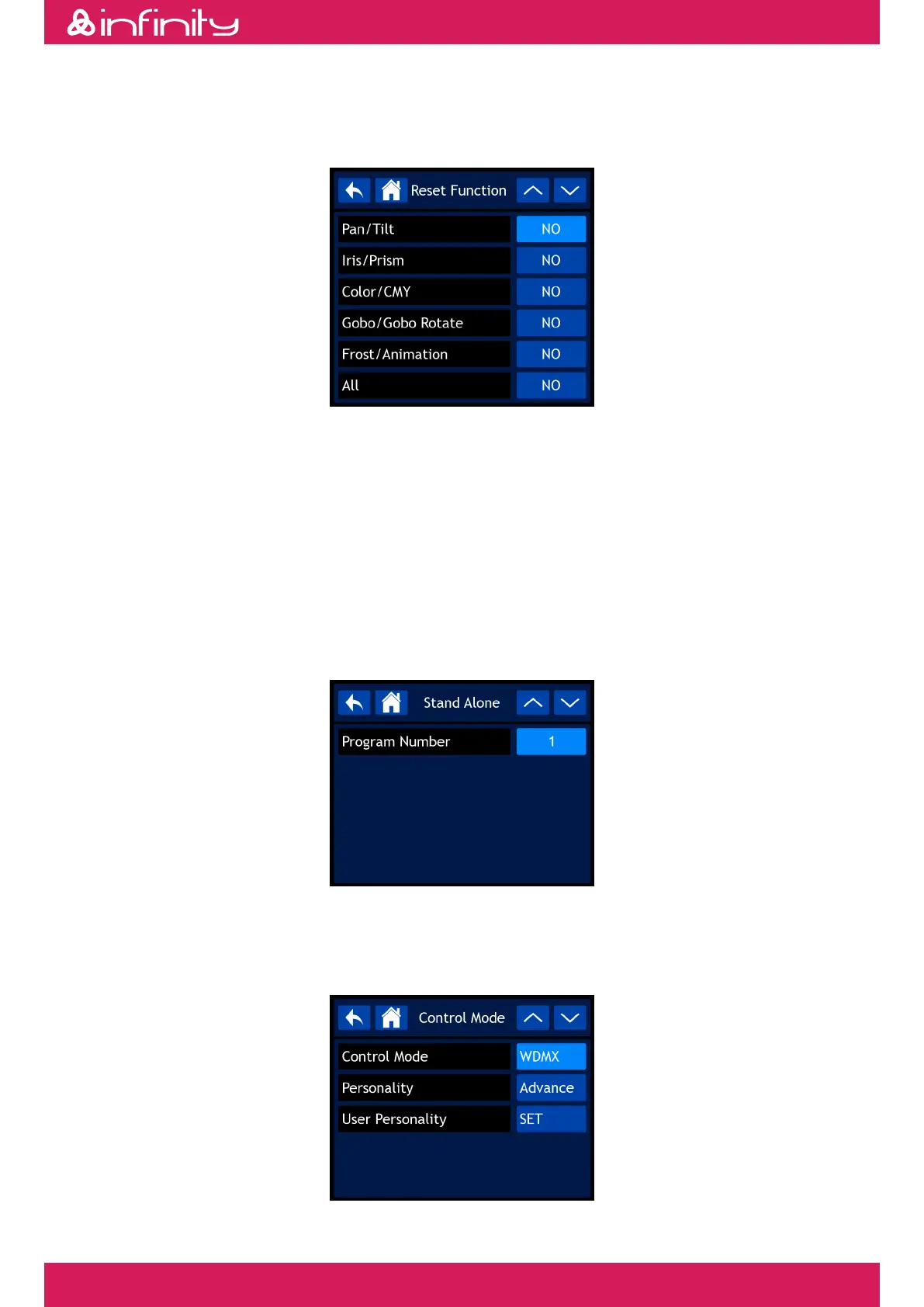 • Gobo/Gobo Rotate: Reset Gobo/Gobo Rotate (NO/YES)•
