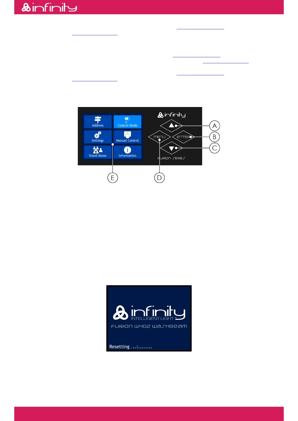 During the reset procedure it is possible to enter the menu to change the DMX address.