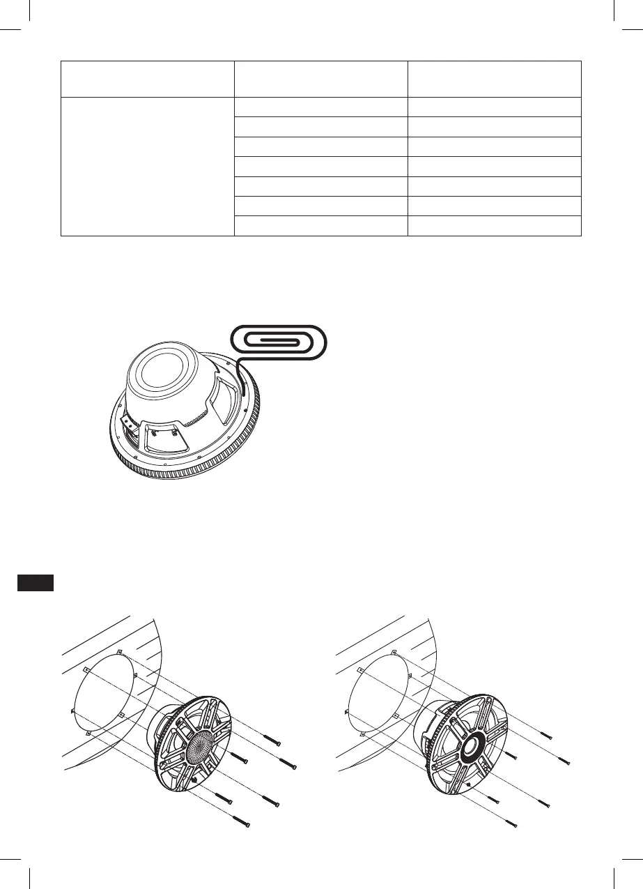 Utilice los tornillos incluidos para montar el altavoz en su lugar. Si es necesario, utilice los clips rápidos incluidos para que el