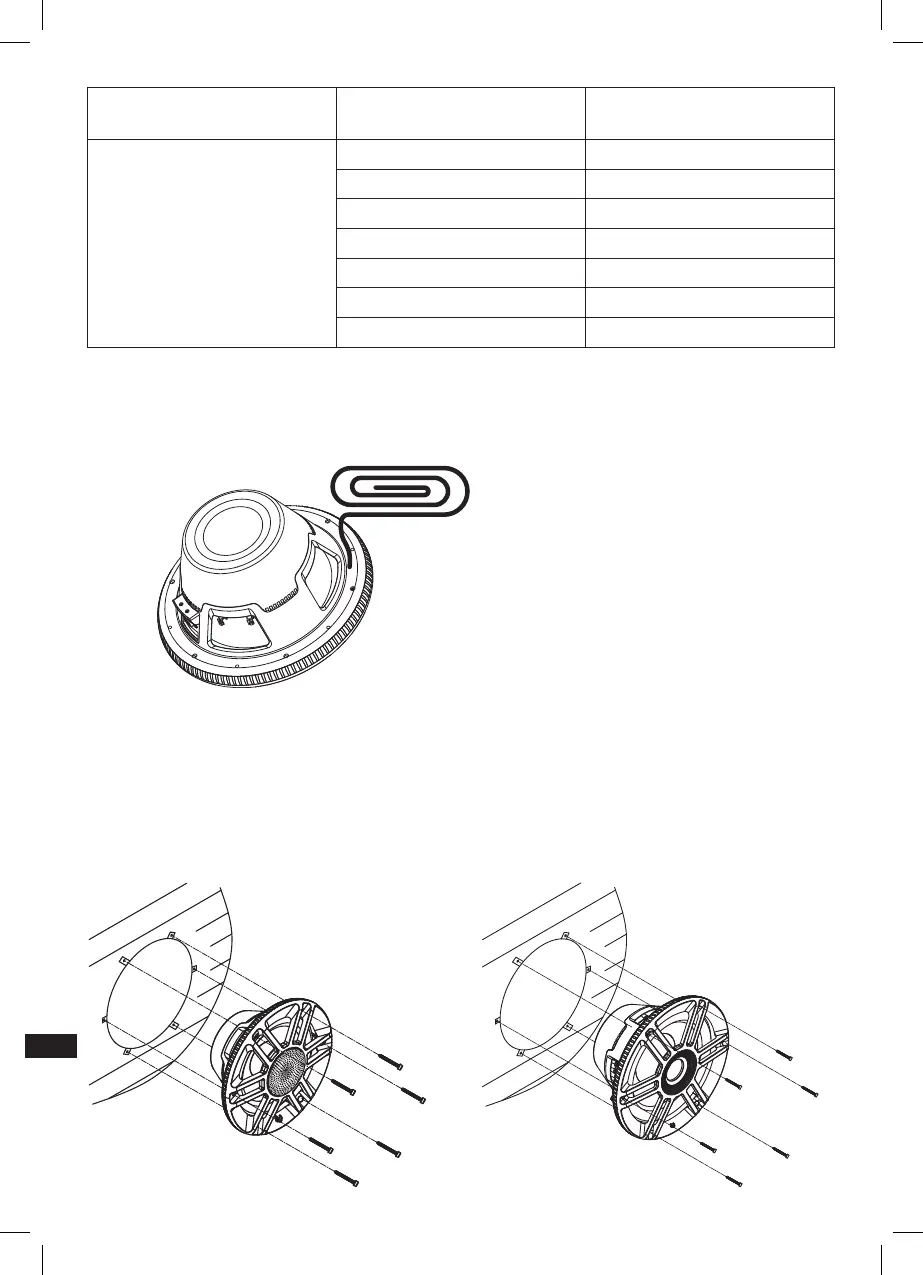 設置機器に水が入るのを防止し、音響的に適切な密閉を実現するため、スピーカーのフレームに粘着性の発泡シールを貼ってくだ