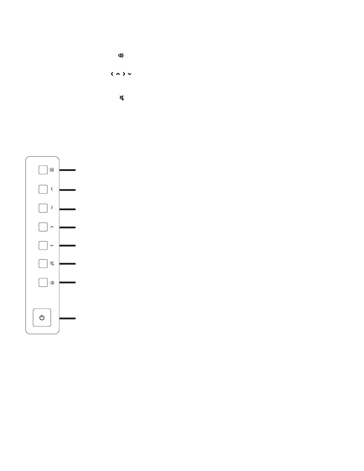 Le/Volume Decrease buon: Decreases the audio volume when the OSD menu is o. Decreases
