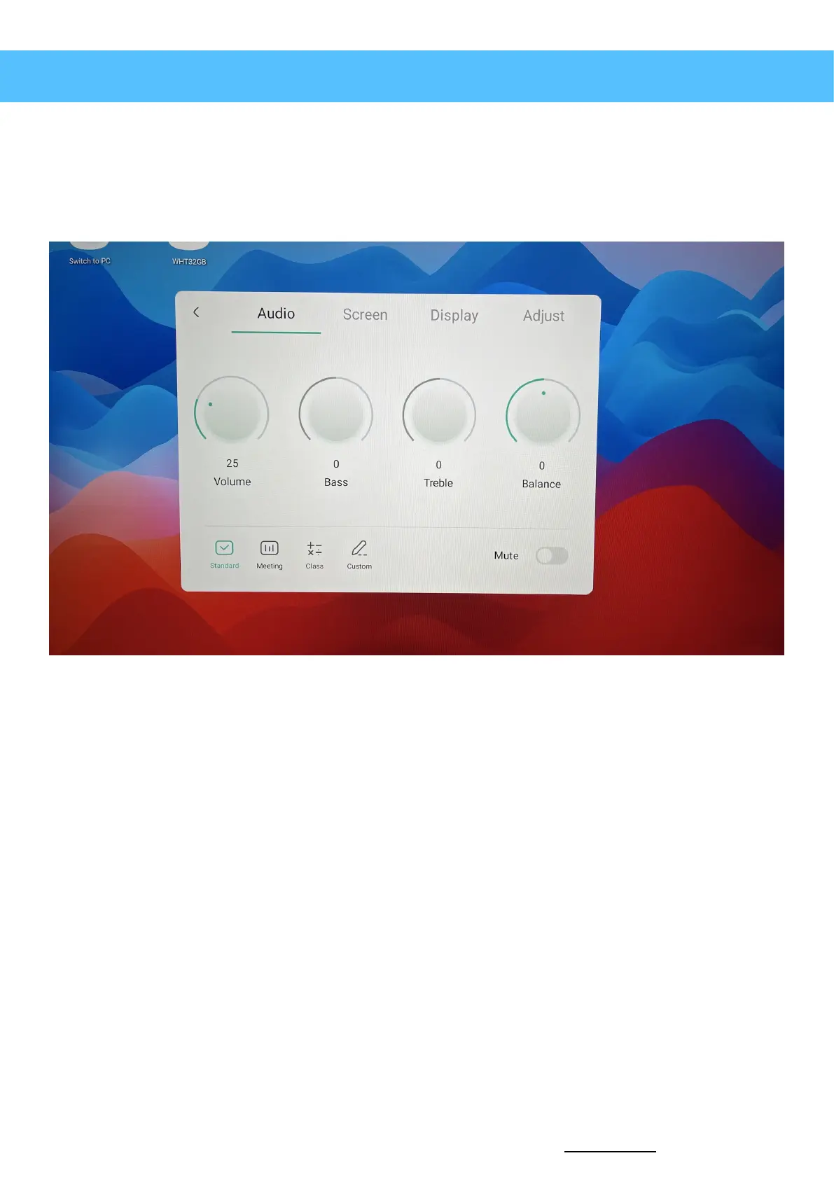 the bottom by pressing “Standard”, “Meeting” or “Class”. It will adjust the Bass, Treble and Balance