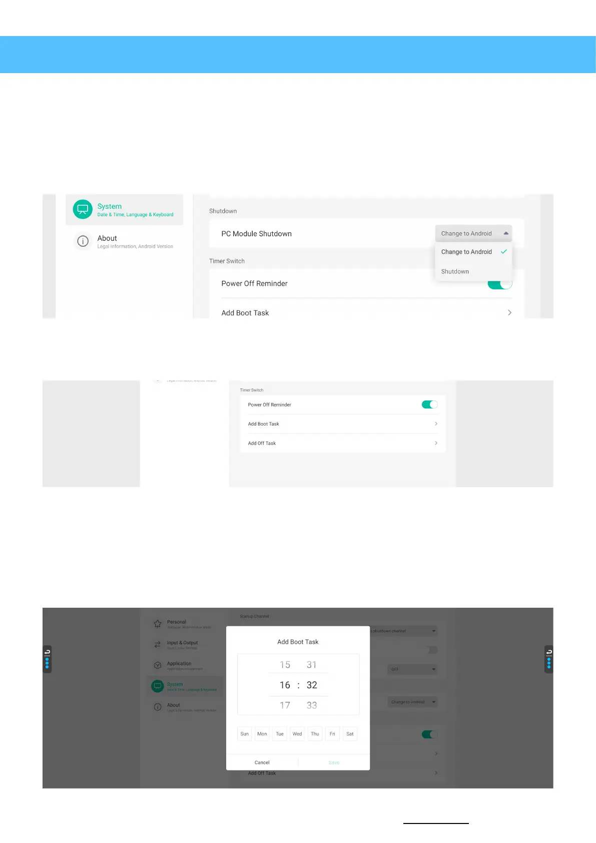 Users can select either to have the display shut down or switch the source to Android when the PC module is