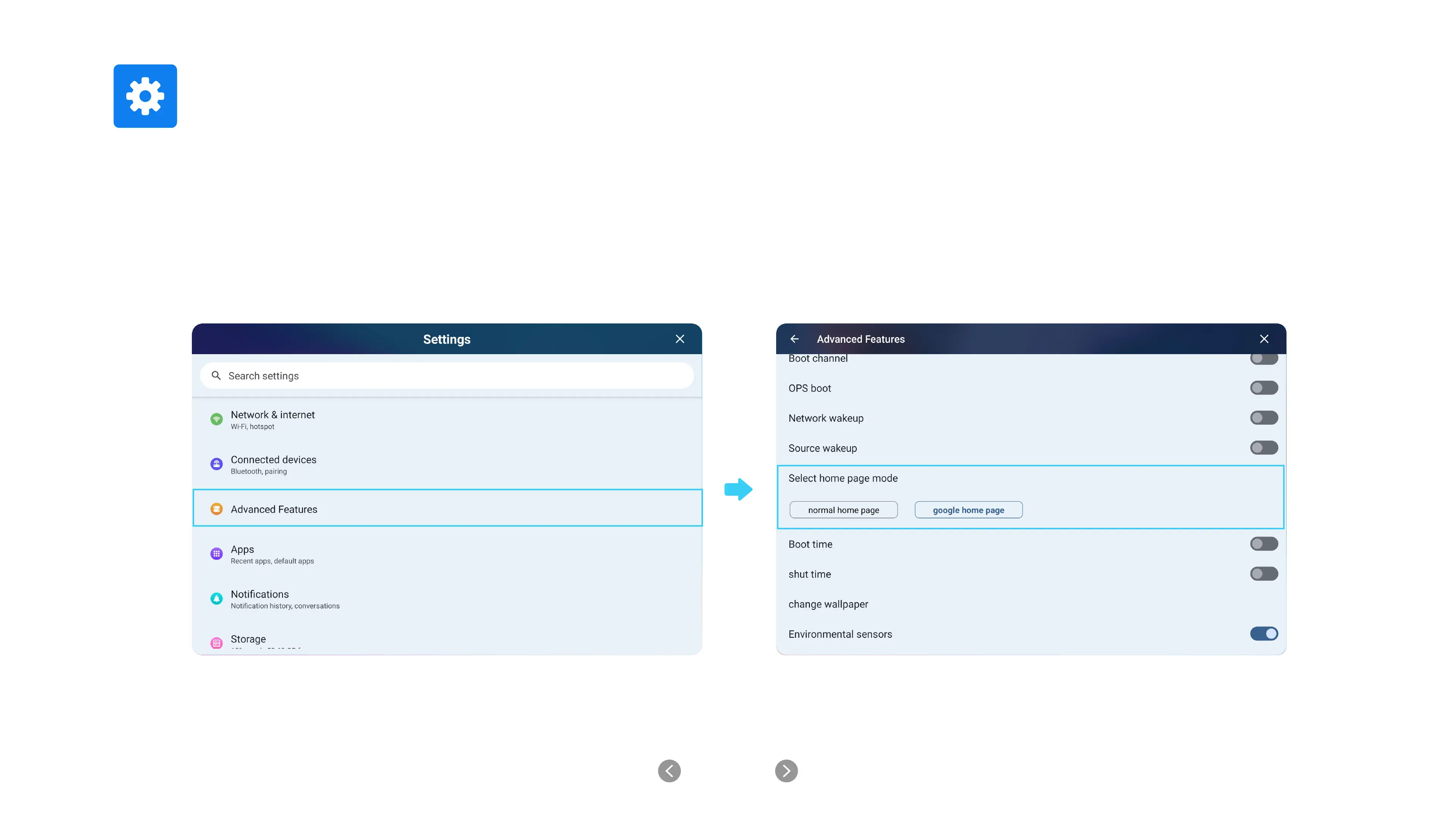 “Homepage—Settings—Advanced Features—Select home page mode”normal & google home page