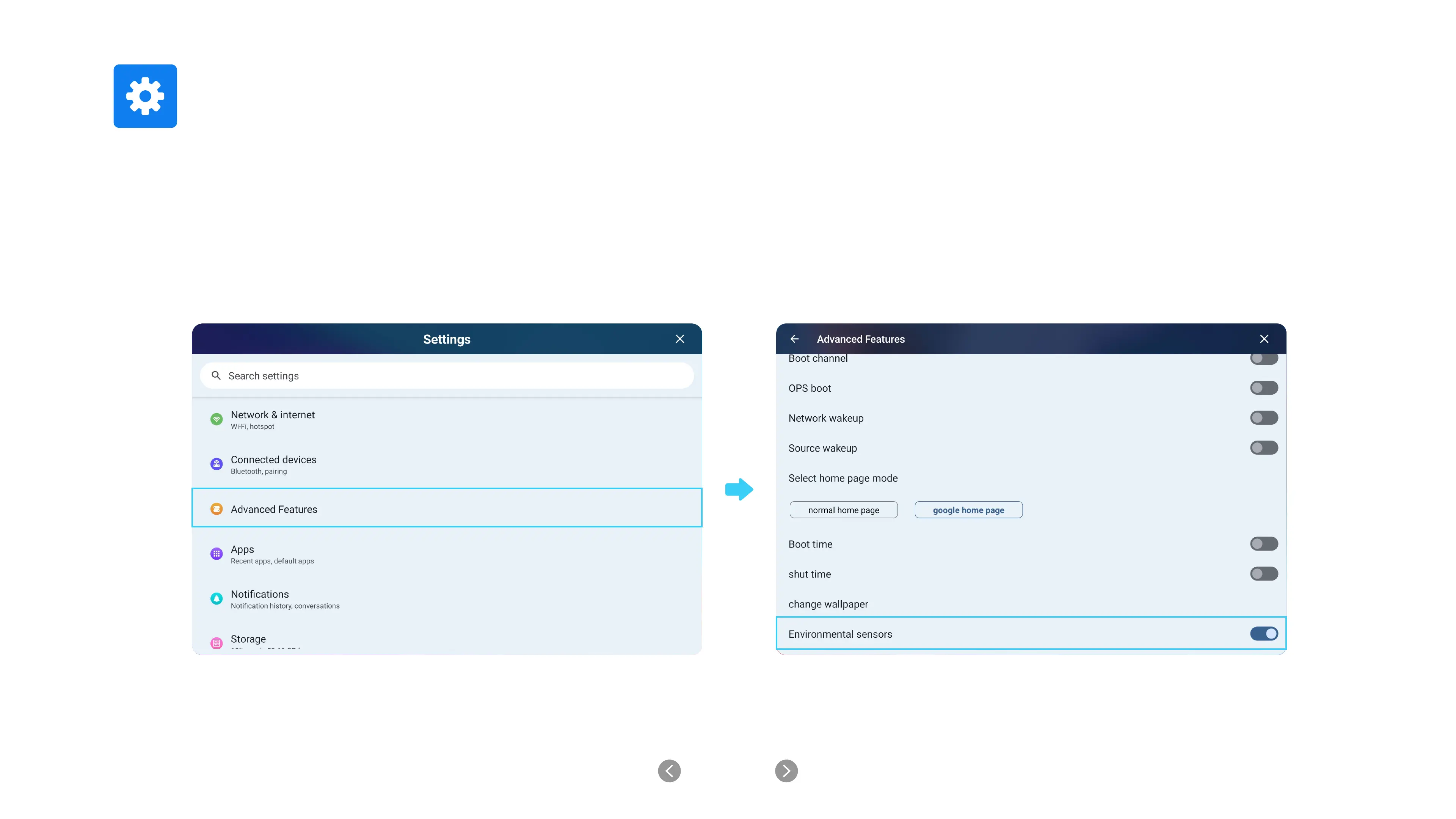 Environmental sensor(including temperature and humidity sensor, PM2.5 sensor, carbon dioxide sensor): Turn on the