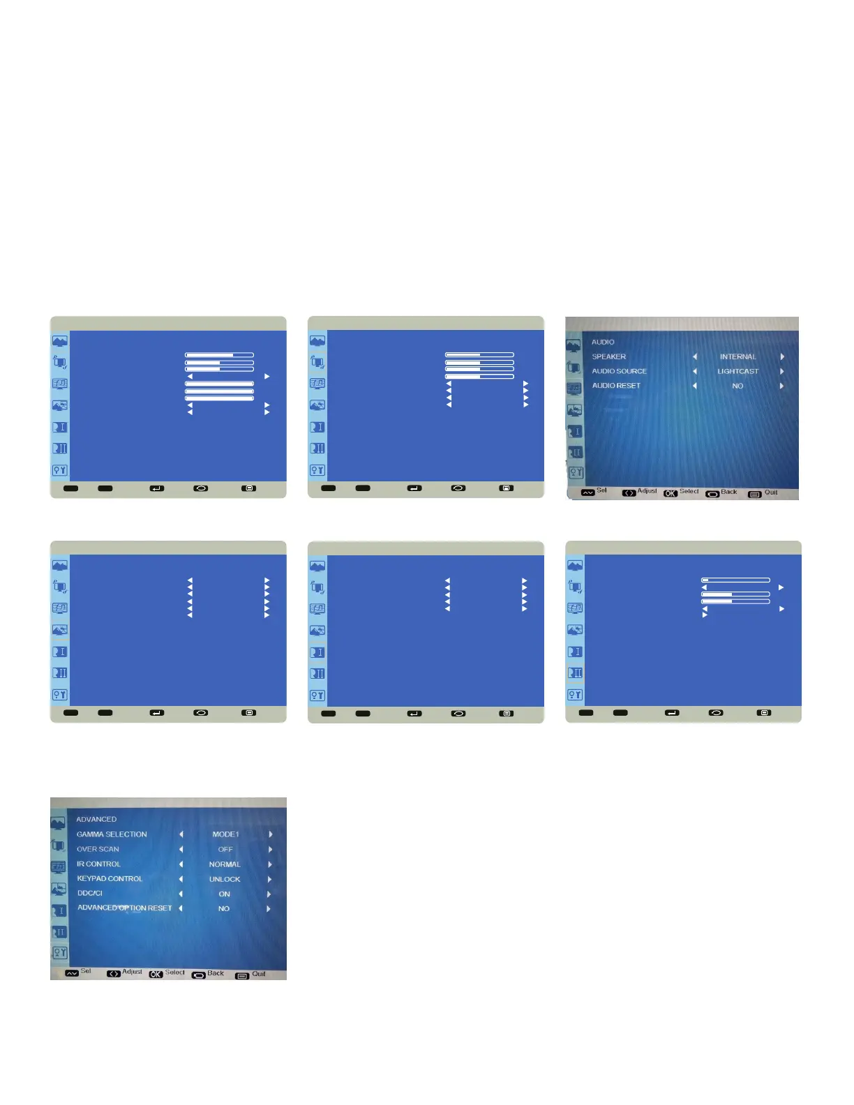 Use the up and down arrows and OK button to select the item you would like to adjust. Left and right arrow buttons are used to make
