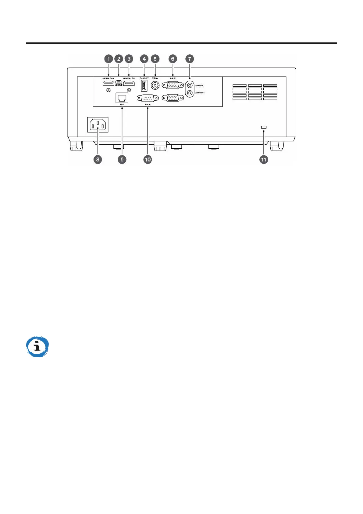 ⑩ RS232 – brancher un câble RS232 pour contrôler le projecteur depuis un ordinateur