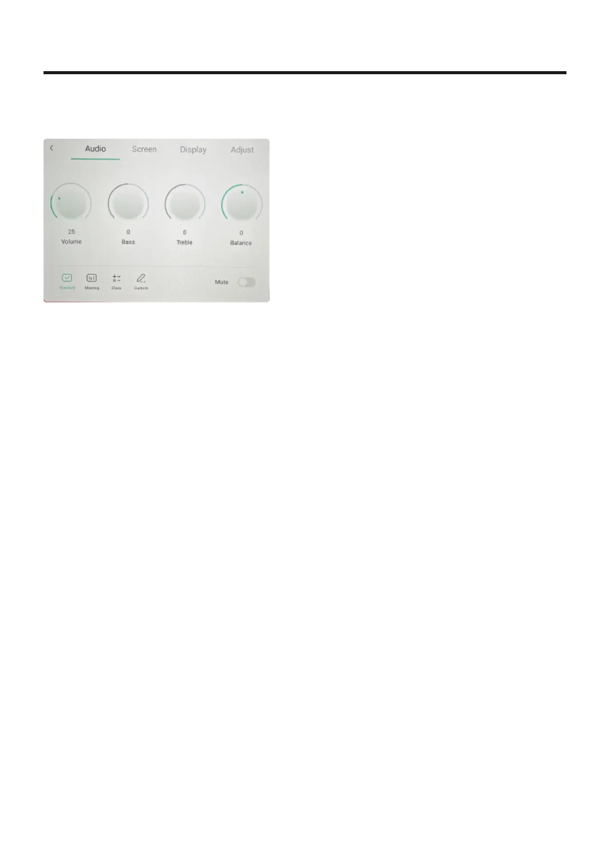 selected at the bottom by pressing “Standard”, “Meeting” or “Class”. It will adjust the Bass,