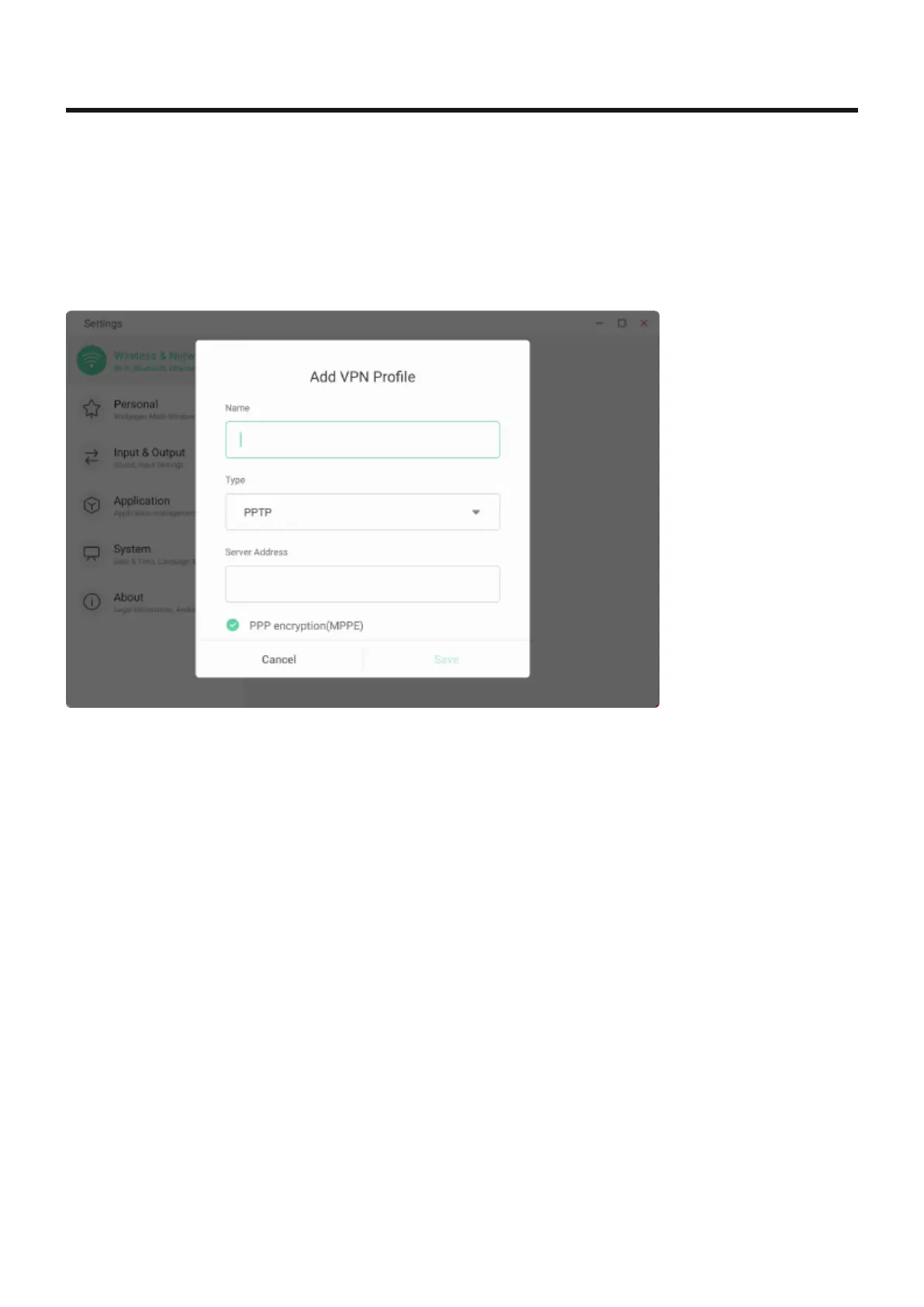 For added security or to connect the display to a remote network, the VPN (Virtual Private Network)