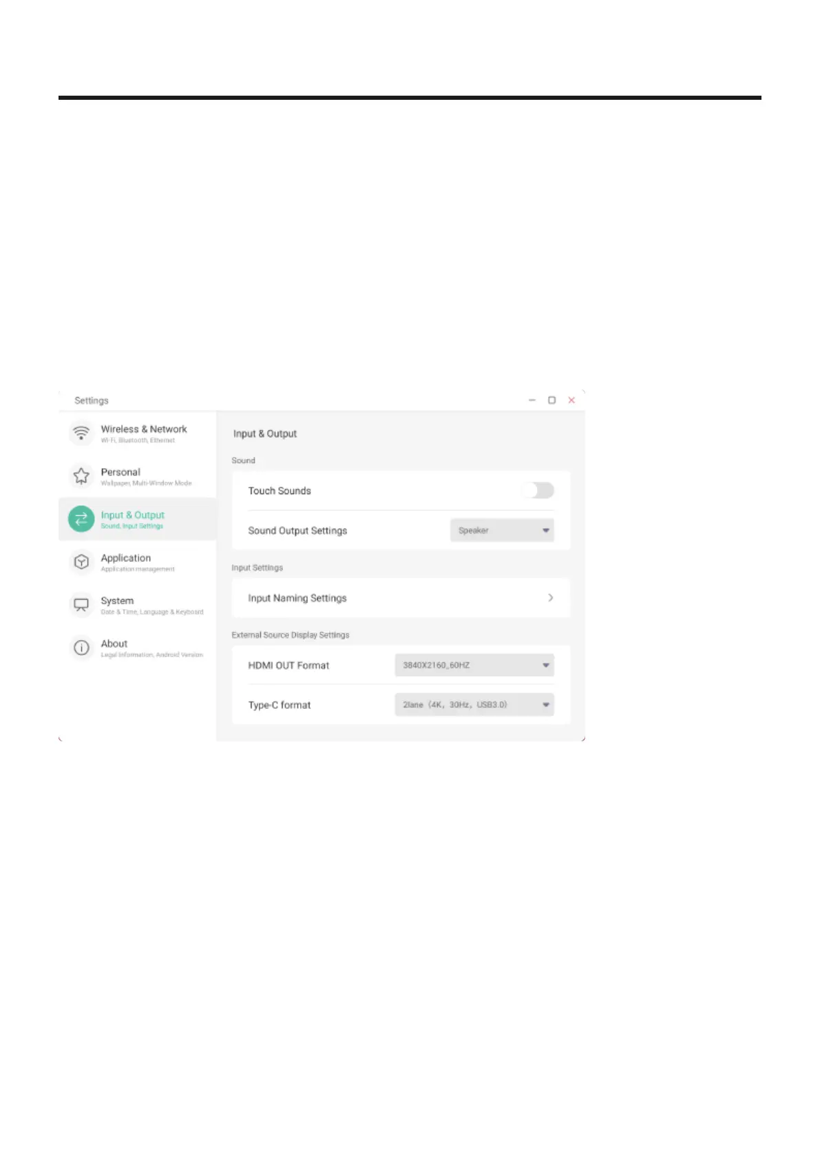 Touch sounds can be switched on/off from this menu. When switched on (default setting), a sound