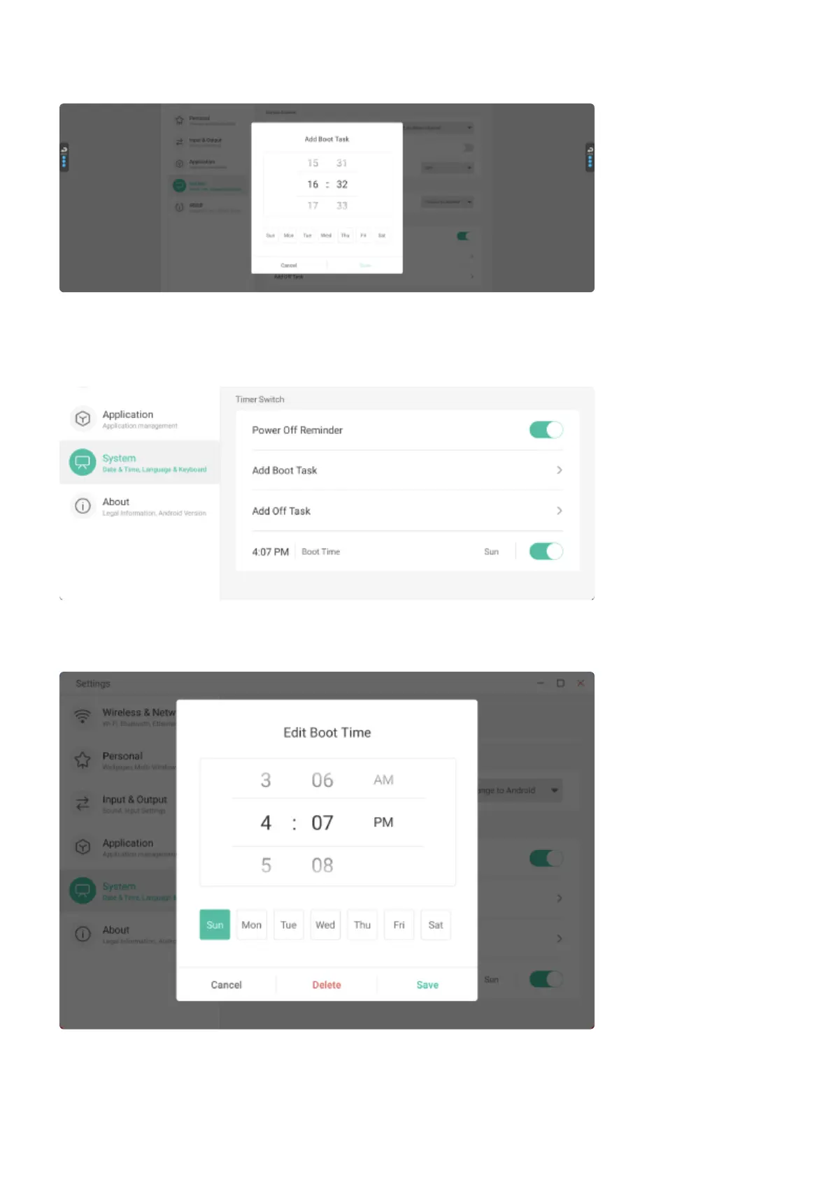 The”add off task” is created to turn of the display in the same way as the boot task is set.