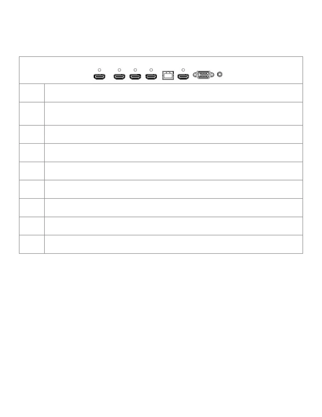 The under panel ports are located on the left side of the bottom of the display. This table shows how to connect them.