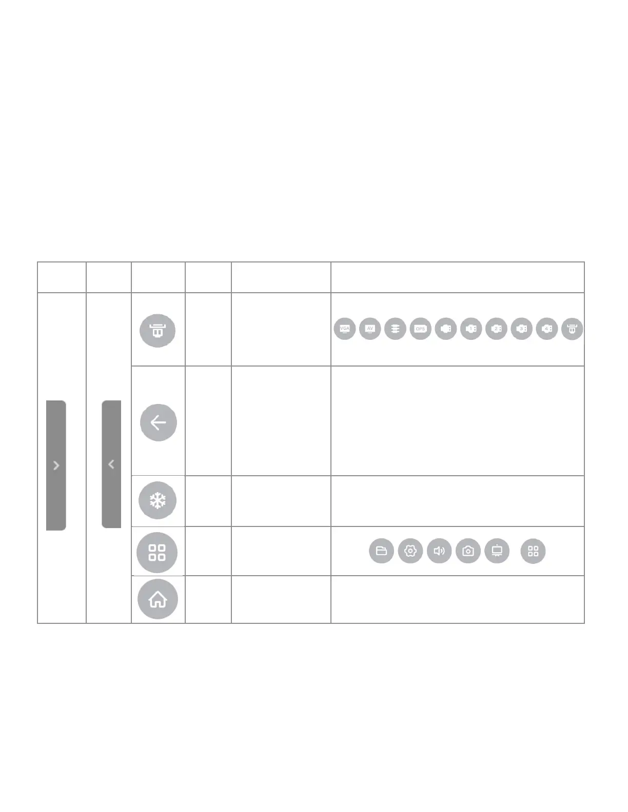 The table below denes the base Total Touch Control Menu icons, which appear on either side of the screen, when you tap the side