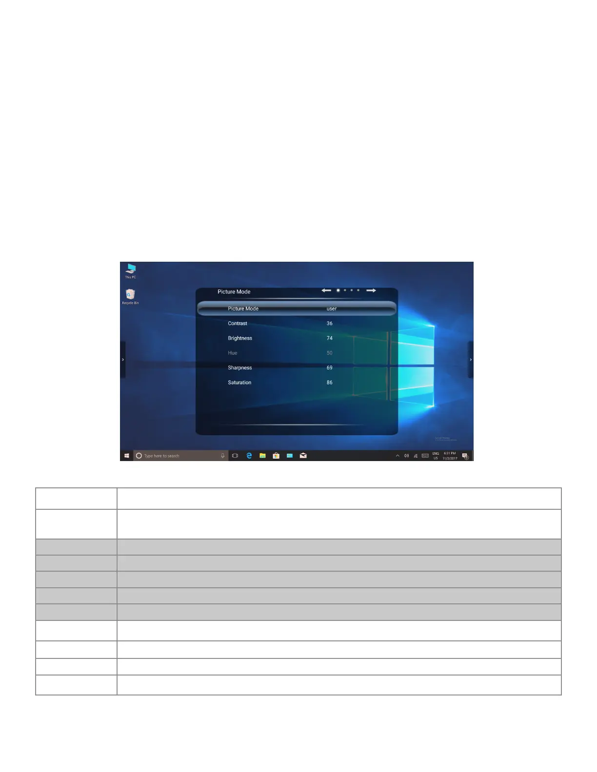 Picture Mode Menu