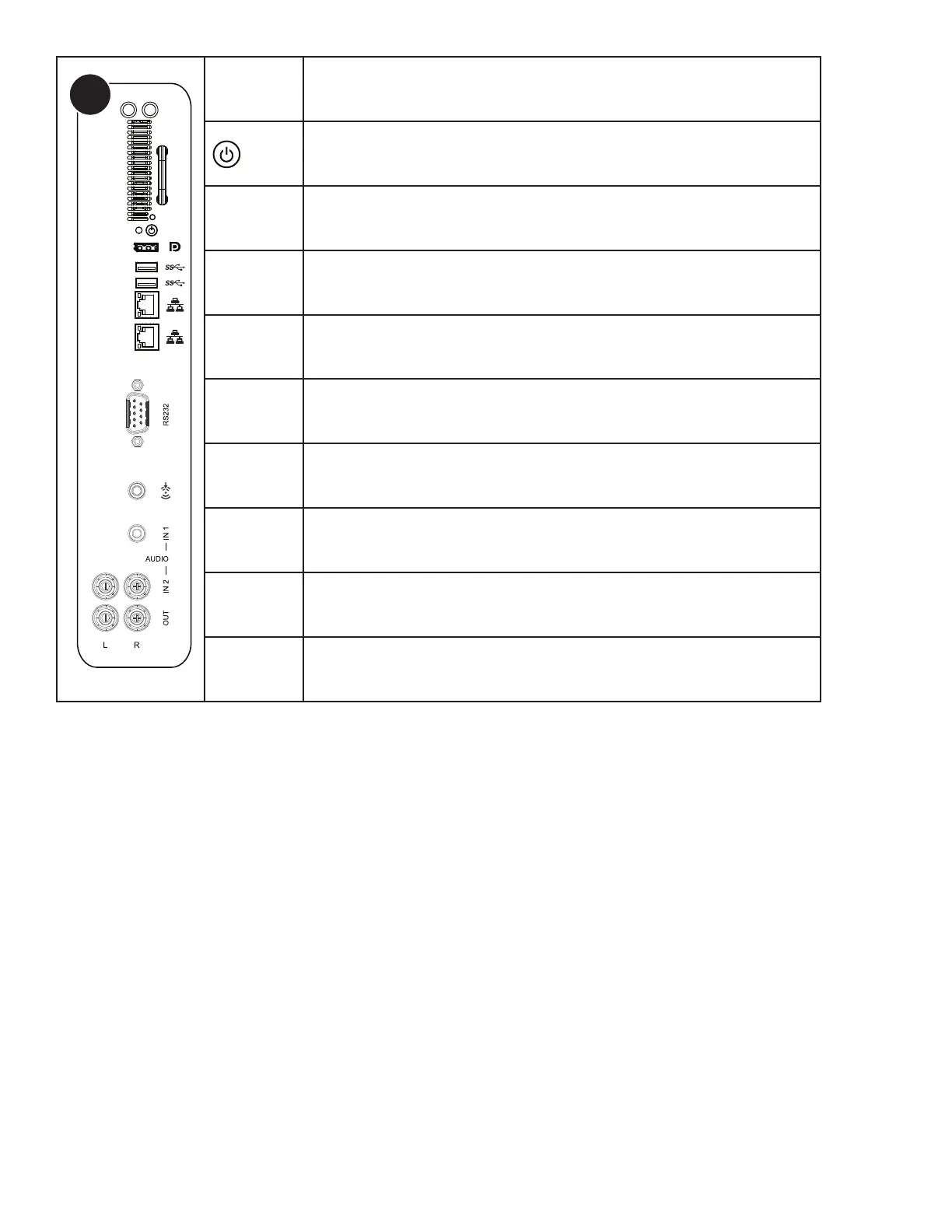 AUDIO OUT Connect an RCA L/R audio cable to external stereo speakers.