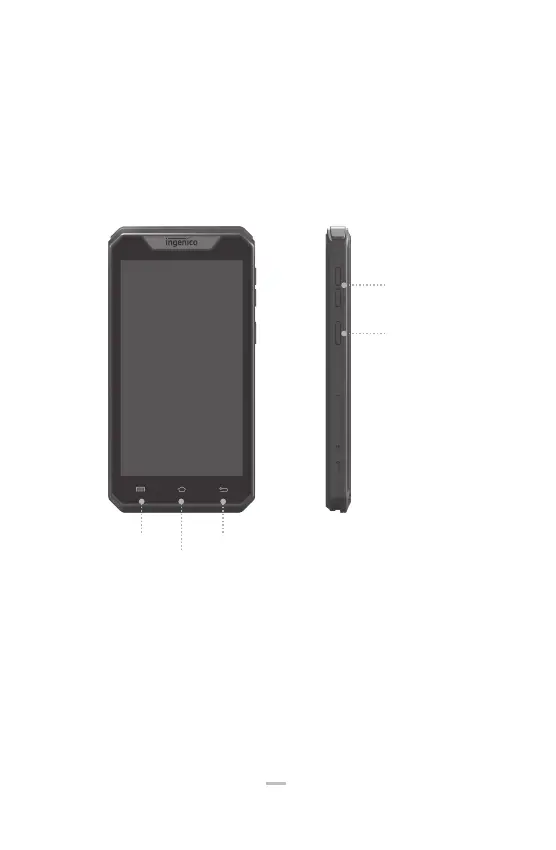 Three physical keys on the right side of the terminal: a power button key