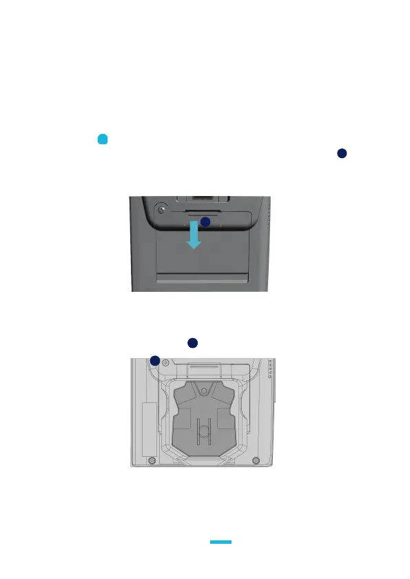 /Unclip the trapdoor by pushing down on the clip with