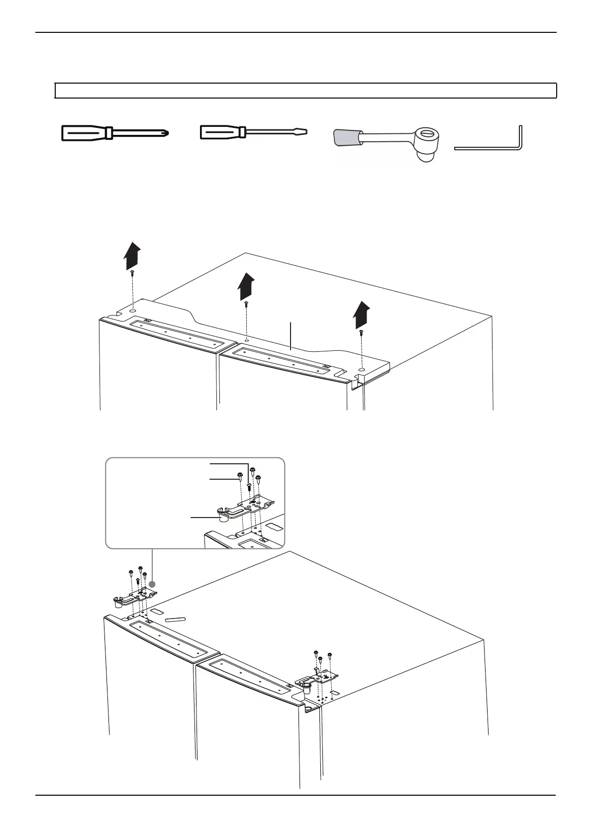 2 With the refrigerator compartment doors shut, remove the three screws that secure the cover on the top of your
